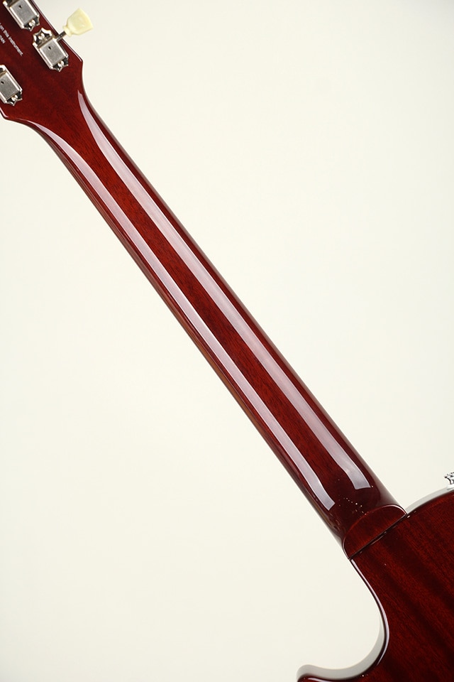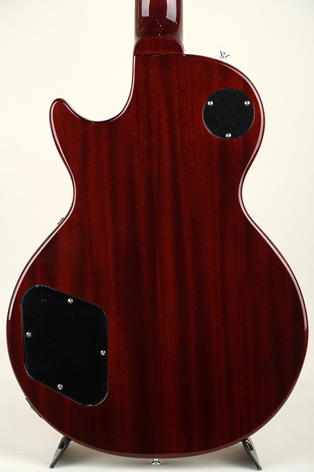 当モデルは、メイプルボディトップにチェンバード加工の施されたマホガニーボディーバック、ローズウッド指板という組み合わせで、伝統的なLPスタイルのウッドマテリアルを採用しながらも、ボディをチェンバー構造にすることで軽量化を図り、近年のプレイスタイルやニーズにマッチした仕様になっております。