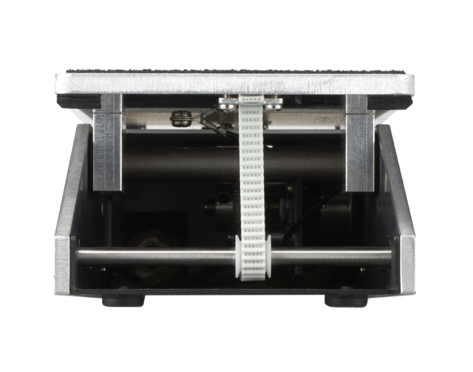 ダイレクト・ボリュームでは、ギアとベルトで可変抵抗器を回すFREE THE TONE独自のフルローテーション・ベルトドライブ・システムを採用しています。これは従来に見られる紐で可変抵抗器を回す構造とは異なり、可変抵抗器を回す機構的な遊びを作らず、ペダル操作に対しスムーズでリニアな音量変化を実現しています。