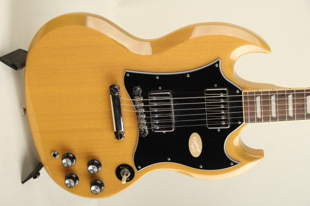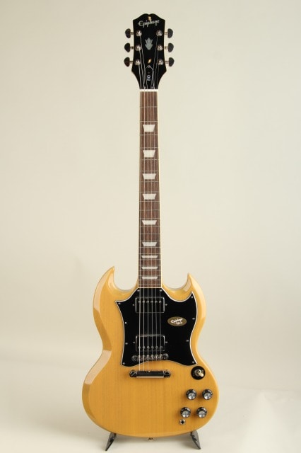 Epiphoneの定番ソリッドモデル、60年代後期のラージピックガード仕様のSG Standard でございます。