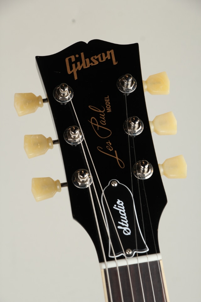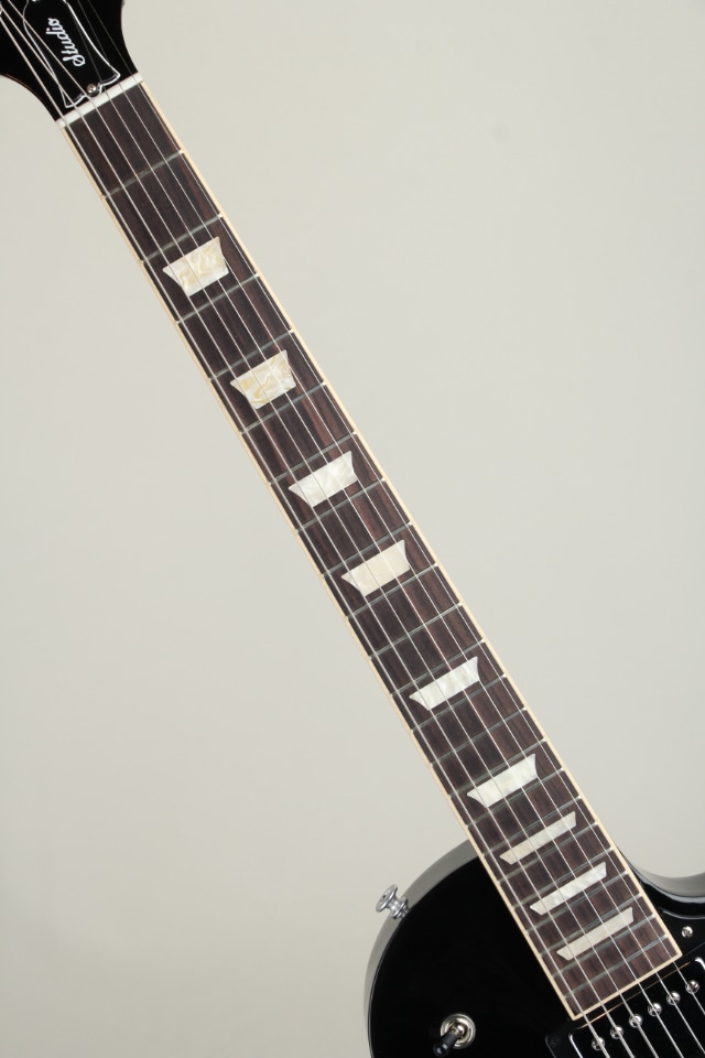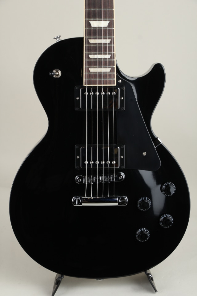 80年代よりレギュラーモデルのラインナップとしてリリースされ、手に取りやすい価格でのレスポールモデルとしてデビューしたレスポール・スタジオ。デビュー当初はノンバインディングのボディとネック、ドットポジションの採用など、主に装飾部品を省略することによりコストダウンが行われておりました。メイプルトップのマホガニーボディのマホガニーネックといったベーシックなウッドマテリアルを使用しピックアップカバーやピックガードが装着されております。60年代を意識した薄めのネックシェイプであるスリムテーパーネックを採用、ボフロントとリアのボリュームノブをプッシュ / プルすることによりハムバッカーピックアップのコイルタップが可能となっております。