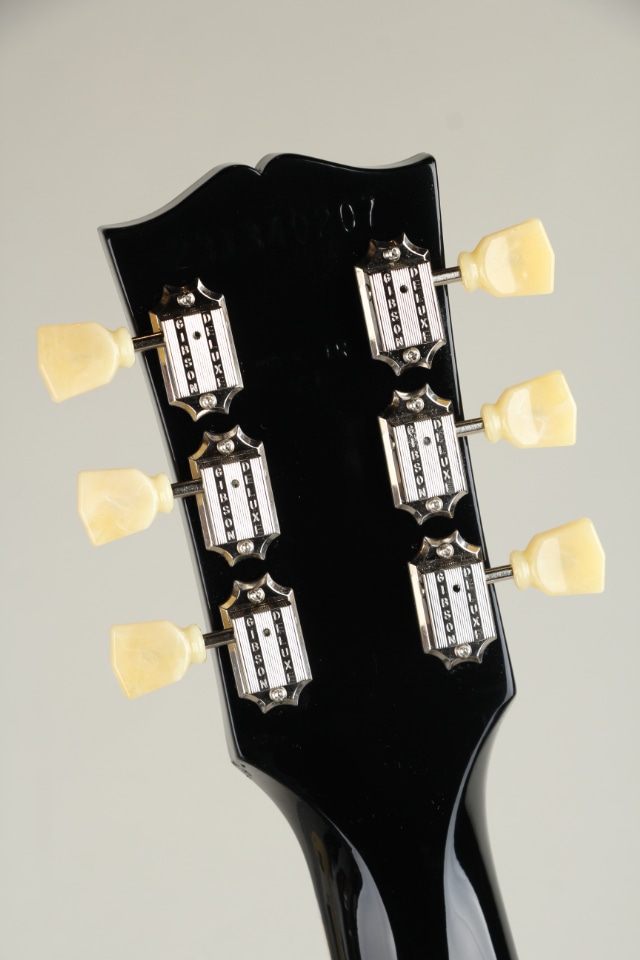 また、ボディには軽量化を目的とした肉抜き加工であるウエイトリリーフが施されており、数種類あるギブソンのチェンバード加工でもレベルの大きいウルトラモダンウエイトリリーフを採用しており実測値3.32kgといった軽量な重量を実現しております。