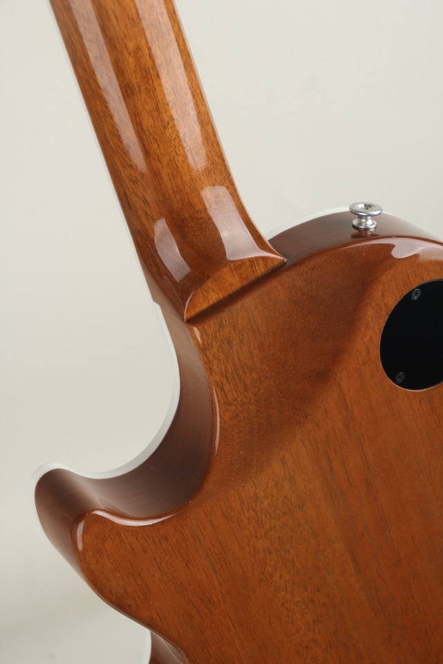 ボディにはウルトラモダンウエイトリリーフによる軽量化が施されたマホガニーを使用、ボディフィニッシュは伝統的なニトロセルロースラッカー塗装が採用されており、艶のあるグロス仕上げとなっております。指板にはローポジションからハイポジションにかけてラジアスが変化するコンパウンドラジアス指板を採用。ネックシェイプは演奏面で有利なスリムテーパープロファイル、ボディとネックのジョイント部には削り込みによるヒールカットが施されており、ハイポジションの演奏性も格段に向上しております。さらにペグには演奏中のチューニングのずれを軽減するロック式のグローバーペグが搭載されております。