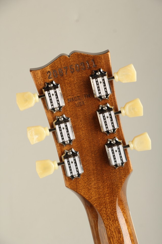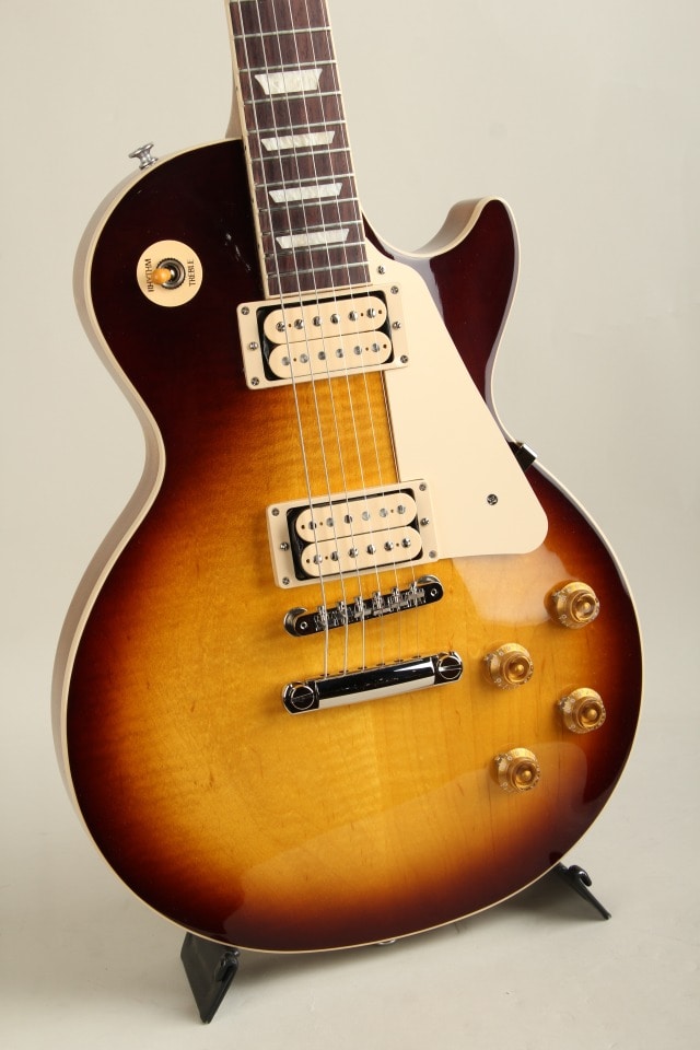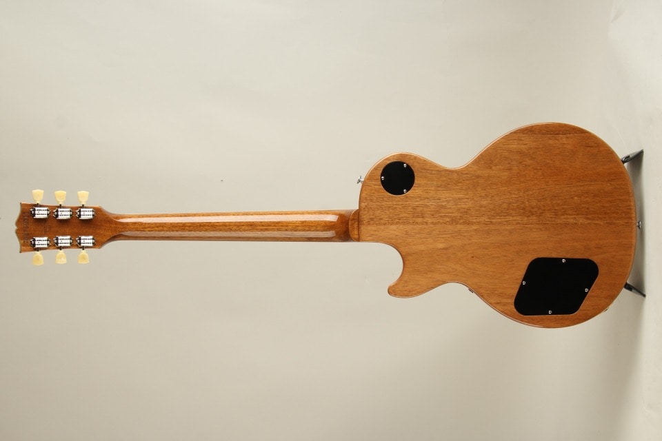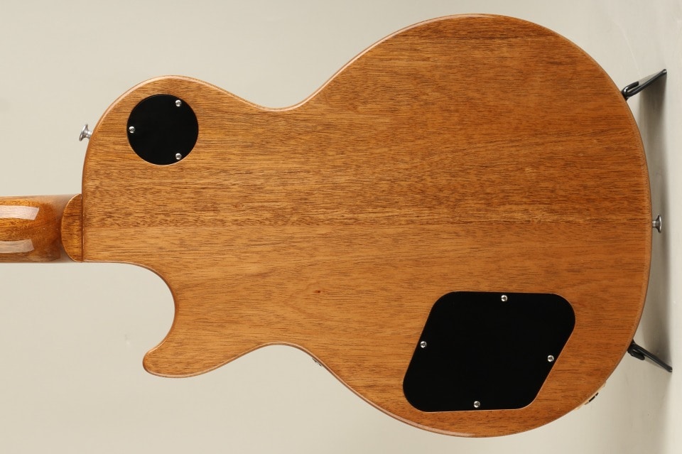 現行モデルとしてラインナップされているLes Paul Standard 50s / Les Paul Standard 60s をベースに、ピックアップカバーを装着しないオープンタイプに加え、両側ともにホワイトカラーのボビンで構成される通称ダブルホワイトのバーストバッカーピックアップを搭載。使用されている塗料は現行モデルと同じくニトロセルロースラッカーですが、現行モデルは50年代当時に製作されたときと同じ完全な新品仕上げとなっておりますが、当モデルはヴィンテージのような経年による風合いを再現するため現行モデルとは違いクリア塗装に着色が施されたフィニッシュが採用されております。メイプルトップのマホガニーボディ / マホガニーネックのローズウッド指板といった伝統的なウッドマテリアルを採用、ピックアップにはアルニコ2マグネット採用のBurstbucker 1 / Burstbucker 2 を搭載しております。ネックシェイプは50年代を意識した丸みがありしっかりとした握りごたえのある50s Vintage シェイプを採用。軽量化を目的とした肉抜き加工であるウエイトリリーフは施されていない完全なソリッドボディとなっております。