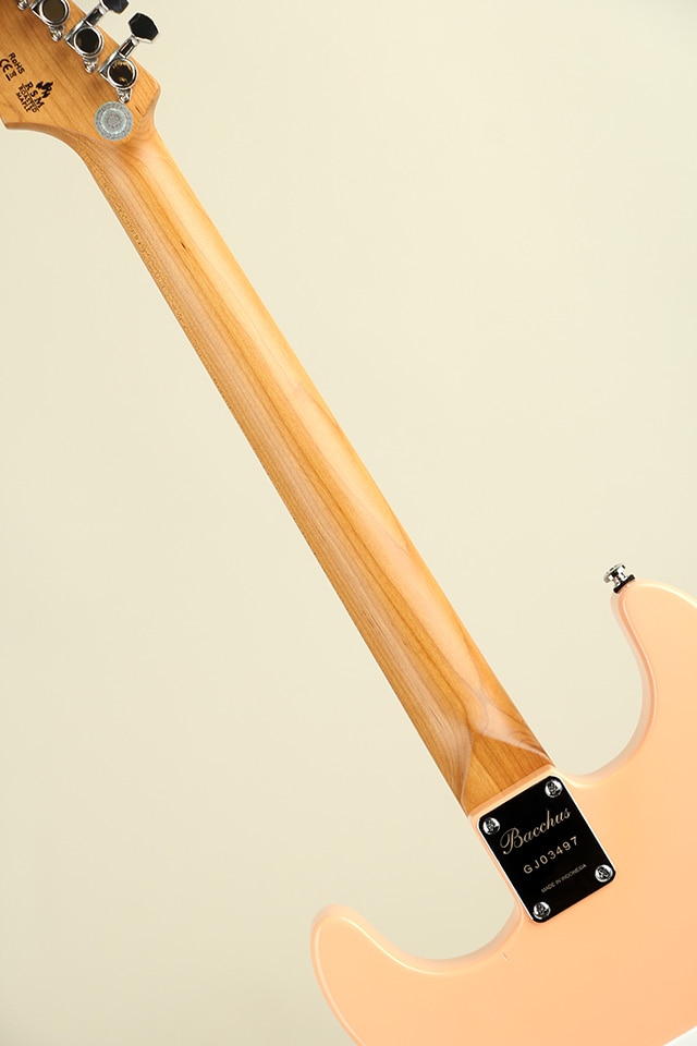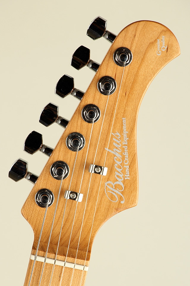 ネックにはBacchusの新機軸でもあるローステッドメイプルを採用。ローストする工程上でゆがみが生じてしまうような木材はその時点で淘汰されるため、ネックとして搭載されている個体は非常にゆがみやねじれに強く、比較的手に取りやすい価格帯ながら長い間ご愛用できる仕様となっております。