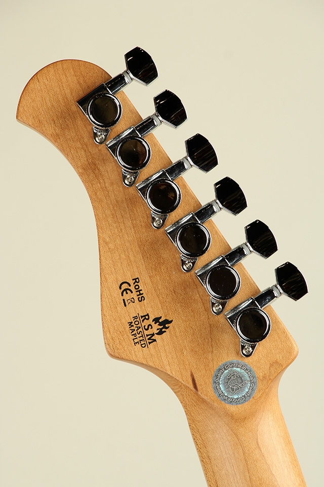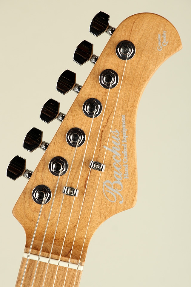 ネックにはBacchusの新機軸でもあるローステッドメイプルを採用。ローストする工程上でゆがみが生じてしまうような木材はその時点で淘汰されるため、ネックとして搭載されている個体は非常にゆがみやねじれに強く、比較的手に取りやすい価格帯ながら長い間ご愛用できる仕様となっております。