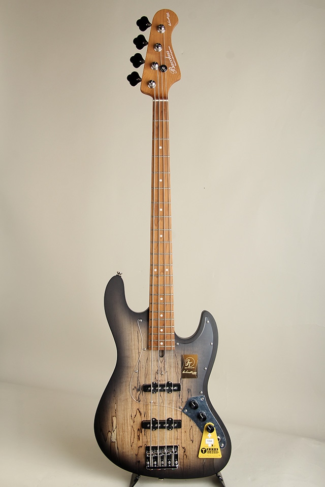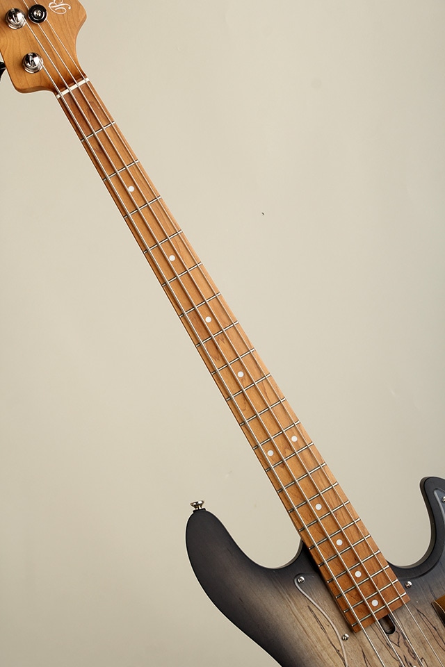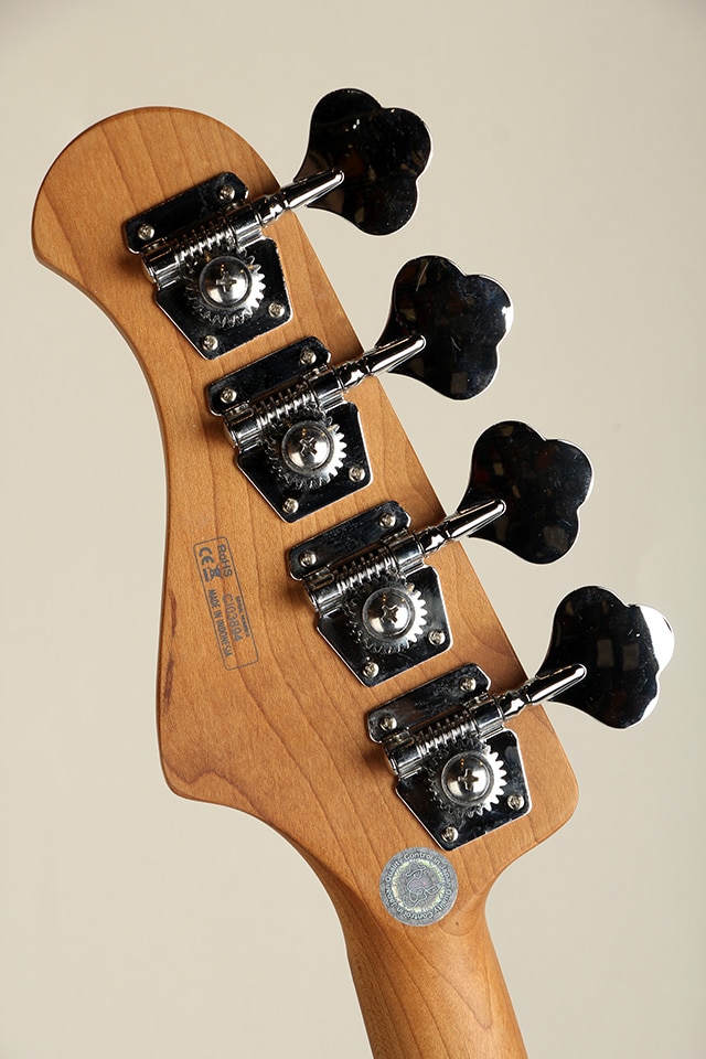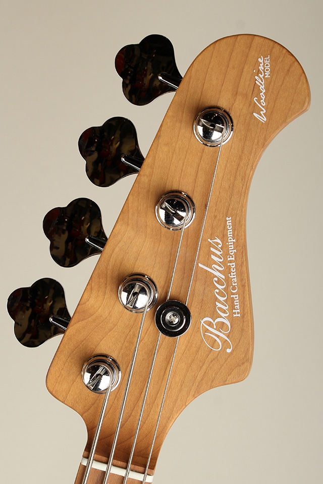 “WL”モデルは、”Handmade Series”で培った“WOODLINE”の持つディンキーシェイプのボディを継承し、一般的なJBタイプのエレキベースよりややスリムに設計されプレイアビリティに優れます。ボディトップには美しい杢目が目を引くスポルテッドメイプル材を採用、ボディバックにはマホガニー材と似た特徴を持つ中低域が豊かなナトー材、ボディ外周にはブラックのバインディングが施され引き締まったルックスと、つや消しタイプのマットな仕上げにより上品で落ち着いた印象を持った高級感のある仕上がりです。ネック&指板には、高温で加熱処理して材の中の水分や油分を一定数量に揮発させることにより剛性を高め、豊かな生鳴りと経年変化したビンテージのような小慣れたトーンを生み出す、高級機種で採用される事の多いローステッドメイプル材が使用されております。