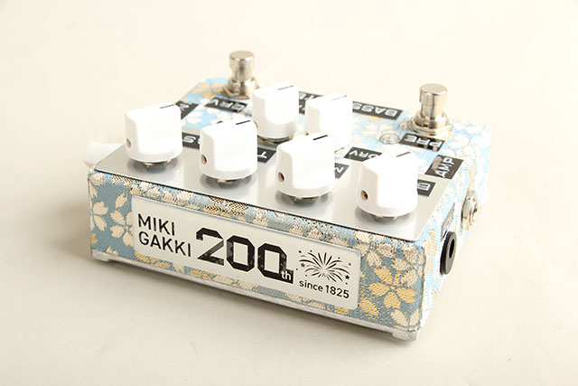 着物生地はすべて一期一会、同じ生地でも使う部分が異なると表情も異なり、1つ1つが世界に1台だけしか存在しない特別なものになりました。また、今回は三木楽器創業200周年を記念して特別なプレートも組み込んでいただきました。