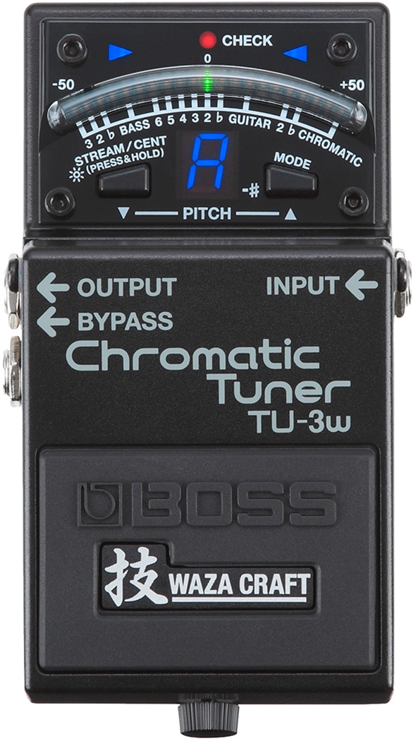 世界中のギタリストの足元で活躍している定番ペダル・チューナーTU-3 に、「技WAZA CRAFT」 の魂が吹き込まれました。回路を一から見直すことで開発されたTU-3W は、業界標準であるTU-3の優れたチューニング機能はそのままに、バッファードとトゥルーバイパスの切り替え機能を搭載。極めてノイズに強いBOSSのバッファと、後段に接続するペダルを選ばないハイインピーダンスの信号伝達を使い分けることができます。TU-3W は、ハイエンド・プレイヤーのために開発されたプレミアム・チューナーです。