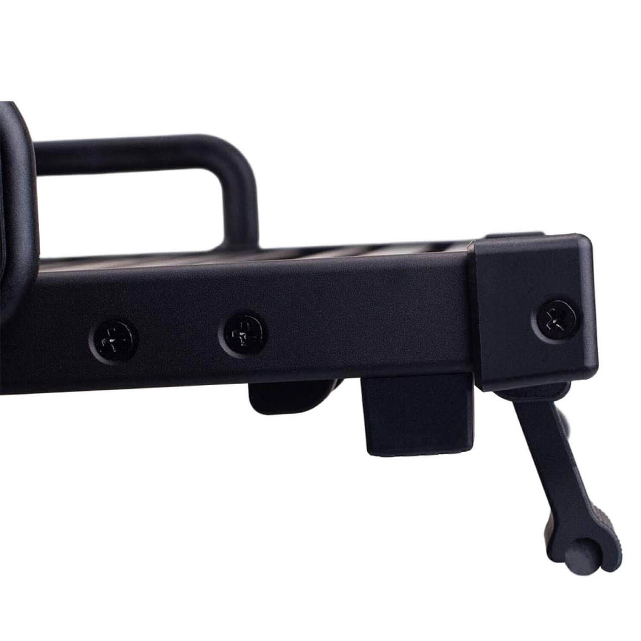 フレームは軽量なアルミ合金で、持ち運びの負担を軽減。表面のアルマイト処理は擦り傷や汚れに強く、外周のエッジ保護が積み下ろし時の衝撃から機材を守り、四隅の接触でも塗装剥がれを抑制。付属のL型 / T型の六角レンチ、ラッチフックなど実用的な付属品により、組み立てと運用の両面で扱いやすさを高めています。