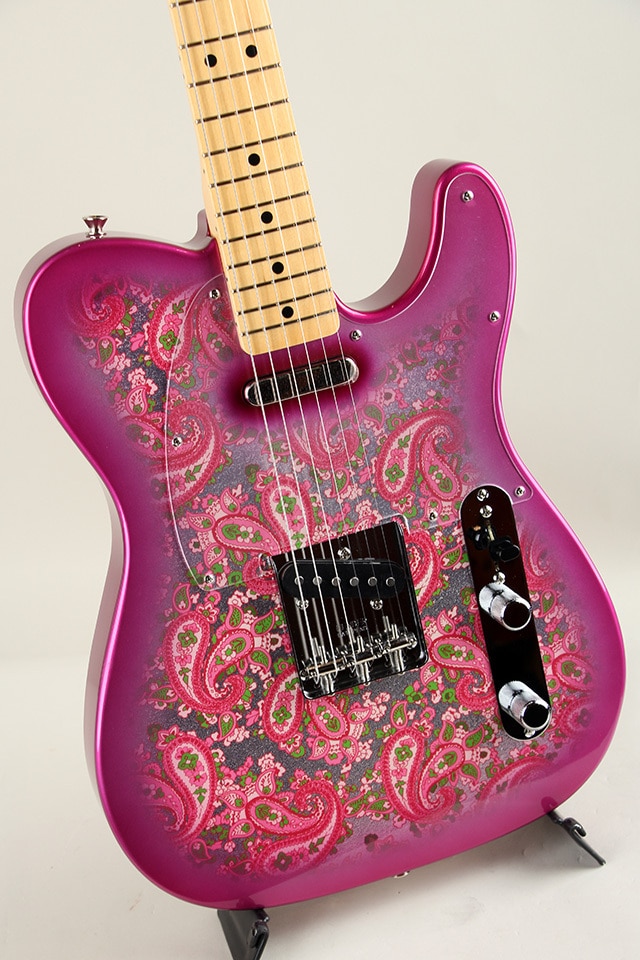 Made in Japan Limited Telecaster Pink Paisleyは、ペイズリー柄のシートを貼り付けた、グロスフィニッシュのアルダーボディを採用。ヴィンテージスタイル21フレット仕様、7.25インチラジアスの60s Oval "C"シェイプメイプルネックが、当時を忠実に再現したクラシカルな演奏性を提供します。またボディカラーブルーバーストの再調色を行い、より深みのあるヴィンテージルックスに仕上げられています。