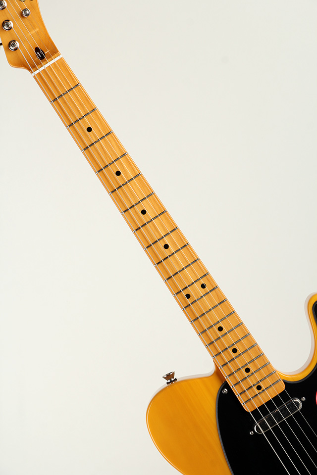 ボディには軽量で鳴りの良いパイン材を使用し、グロス・ポリウレタン仕上げによって美しい外観と耐久性を両立しています。ネックはメイプル材のCシェイプで握りやすく、指板もメイプル仕様。9.5インチ(241mm)ラジアスとナロートールフレットの組み合わせにより、コード演奏からリードプレイまで快適に演奏できます。