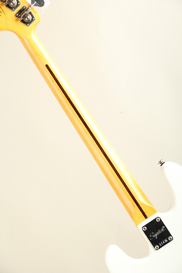 このクラシックなSquierモデルは、60年代のヘッドストックデカール、ニッケルメッキのハードウェア、伝統的な雰囲気を持ち、滑らかなヴィンテージ色で、光沢のあるネック仕上げが特徴のモデルです。