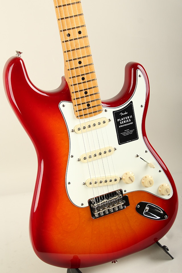 こちらのモデルはチェンバードアッシュボディを採用したこちらのモデルは、伝統的なフェンダーカラーフィニッシュAged Cherry Burstを採用。Player Series Alnico V Single-Coil Strat ピックアップからはクリスタルのように澄み渡ったハイエンド、音楽的なミッドレンジ、そしてタイトなローエンドが得られます。5ウェイブレードスイッチにより、多彩なサウンド設計が可能です。2点支持トレモロと、Classic Gear チューニングマシンによりチューニングの安定性とより豊かな表現力が確保され、無限のサウンドの可能性を追求できる柔軟性を備えています。