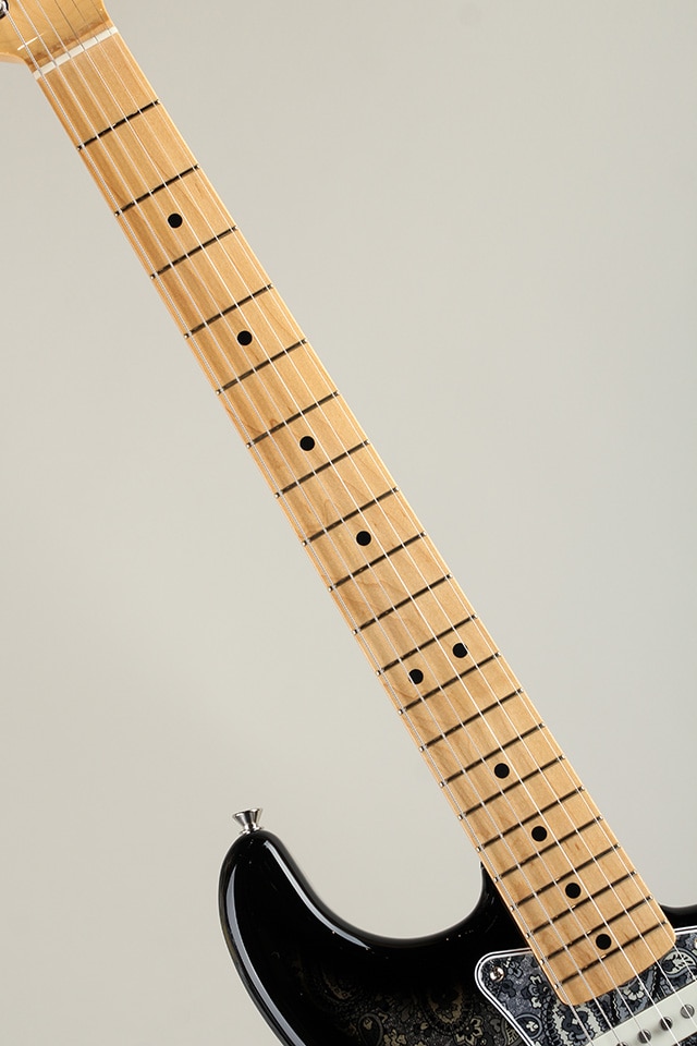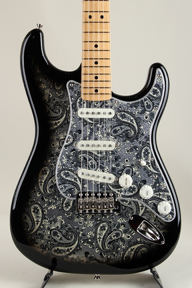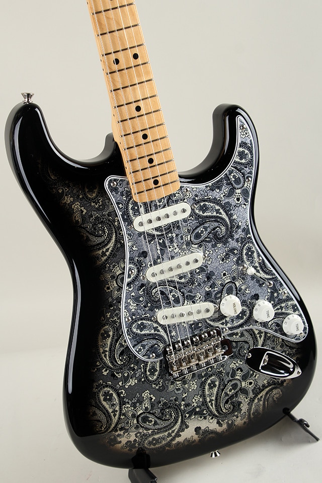 Made in Japan Limited Stratocaster Black Paisleyは、ペイズリー柄のシートを貼り付けた、グロスフィニッシュのアルダーボディを採用。ヴィンテージスタイル21フレット仕様、7.25インチラジアスの1969 "U"シェイプメイプルネックが、当時を忠実に再現したクラシカルな演奏性を提供します。またボディカラーブルーバーストの再調色を行い、より深みのあるヴィンテージルックスに仕上げられています。