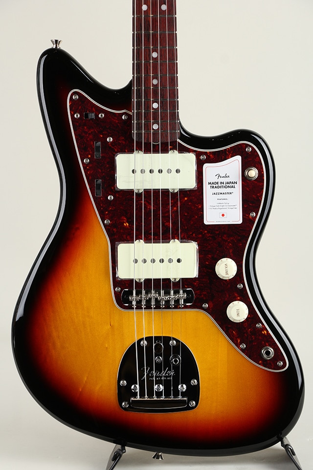 Made in Japan Traditional 60s Jazzmasterはグロスフィニッシュのバスウッドボディを採用。21本のヴィンテージスタイルフレットを装備した9.5インチラジアスの”U” シェイプメイプルネックがTraditionalシリーズならではのクラシカルな演奏製を提供します。フローティングトレモロテイルピース付きの6サドル式ヴィンテージスタイルブリッジ、そしてTraditionalシリーズのために選定されたオリジナルピックアップはリアルで音楽的なヴィンテージトーンを奏でます。細めに設計されたナット幅は日本のプレイヤ ーにも弾きやすい仕様となっています。堅実なギタークラフトマンシップと、プレイヤーのニーズに柔軟に対応する答えが、本シリーズに反映されています。