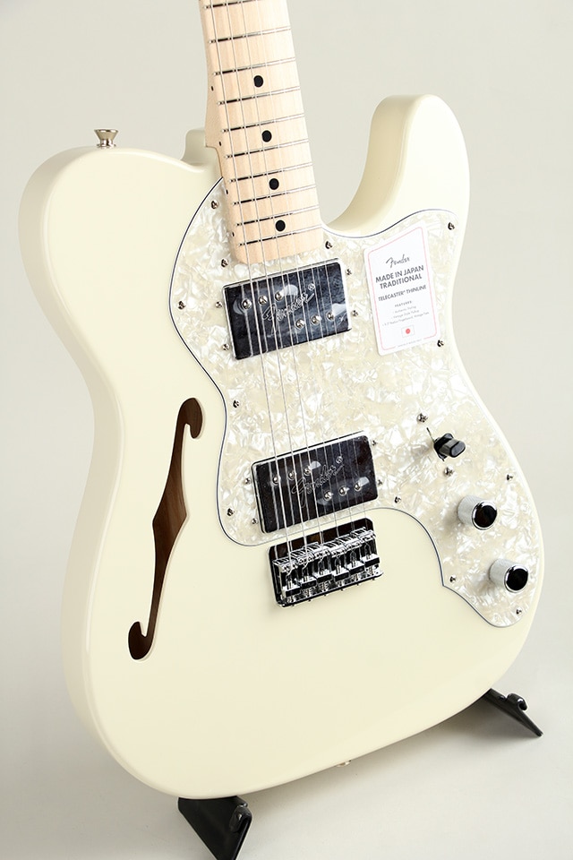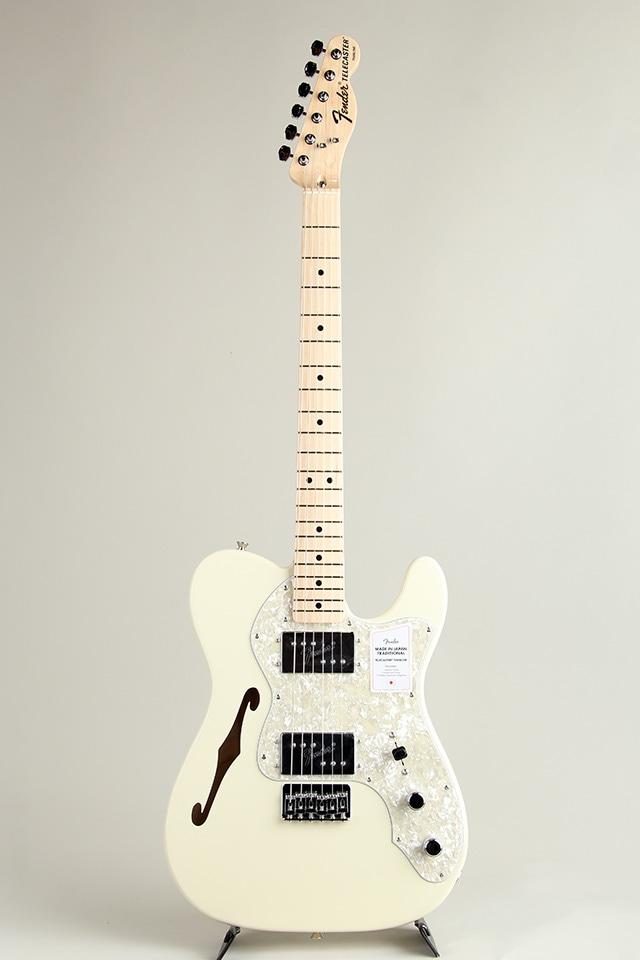 Made in Japan Traditional 70s Telecaster Thinlineはグロスフィニッシュのアッシュボディを採用。21本のヴィンテージスタイルフレットを装備した9.5インチラジアスの”U”シェイプメイプルネックがTraditionalシリ ーズならではのクラシカルな演奏製を提供します。6サドル式String-Through-Bodyハードテイルブリッジ、そしてTraditionalシリーズのために選定されたオリジナルピックアップはリアルで音楽的なヴィンテージトーンを奏でます。細めに設計されたナット幅は日本のプレイヤーにも弾きやすい仕様となっています。堅実なギタークラフトマンシップと、プレイヤーのニーズに柔軟に対応する答えが、本シリーズに反映されています。