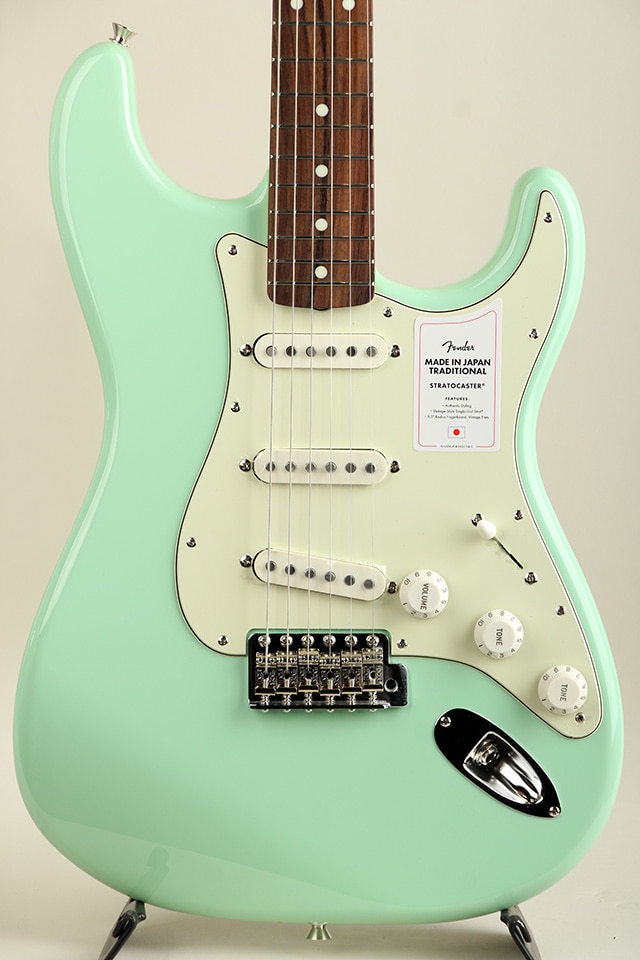 Made in Japan Traditional 60s Stratocasterはグロスフィニッシュのバスウッドボディを採用。21本のヴィンテージスタイルフレットを装備した9.5インチラジアスの”U” シェイプメイプルネックがTraditionalシリーズならではのクラシカルな演奏製を提供します。6サドル式ヴィンテージスタイルSynchronized Tremoloブリッジ、そしてTraditionalシリーズのために選定されたオリジナルピックアップはリアルで音楽的なヴィンテージトーンを奏でます。細めに設計されたナット幅は日本のプレイヤーにも弾きやすい仕様となっています。堅実なギタークラフトマンシップと、プレイヤーのニーズに柔軟に対応する答えが、本シリーズに反映されています。