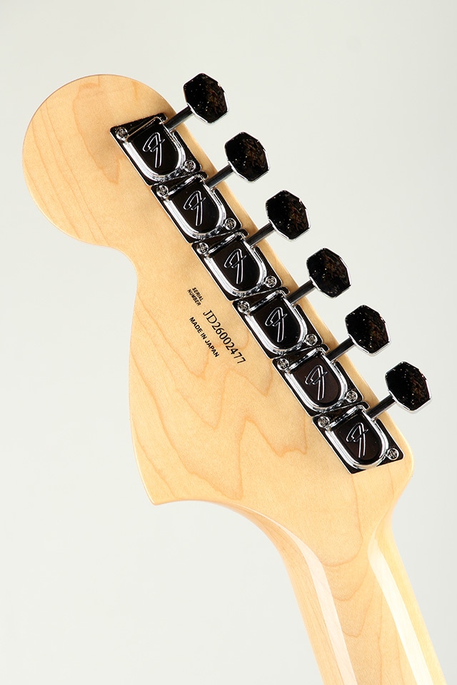 Made in Japan Traditional Late 60s Jaguarは軽さと豊かな倍音成分を併せ持つバスウッドボディにグロスフィニッシュを施し、日本人が扱いやすいように9.5インチラジアスのUシェイプに少し細身なメイプルネック、フレットはクラシカルな演奏性を実現するためヴィンテージスタイル22フレットを採用されています。
