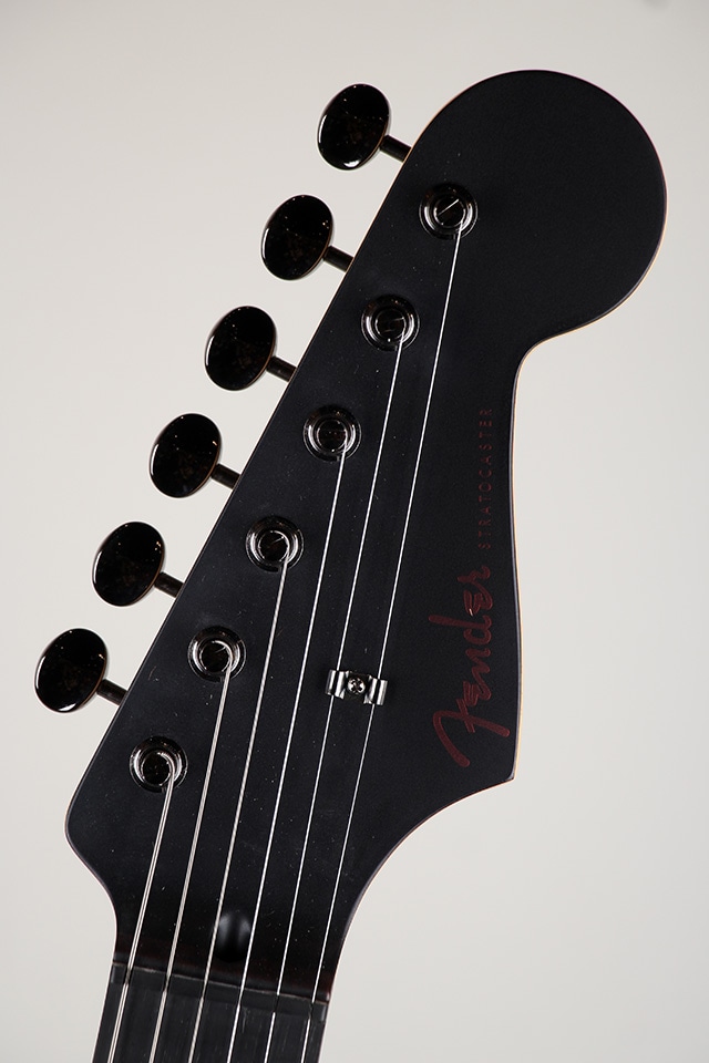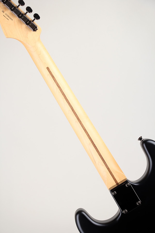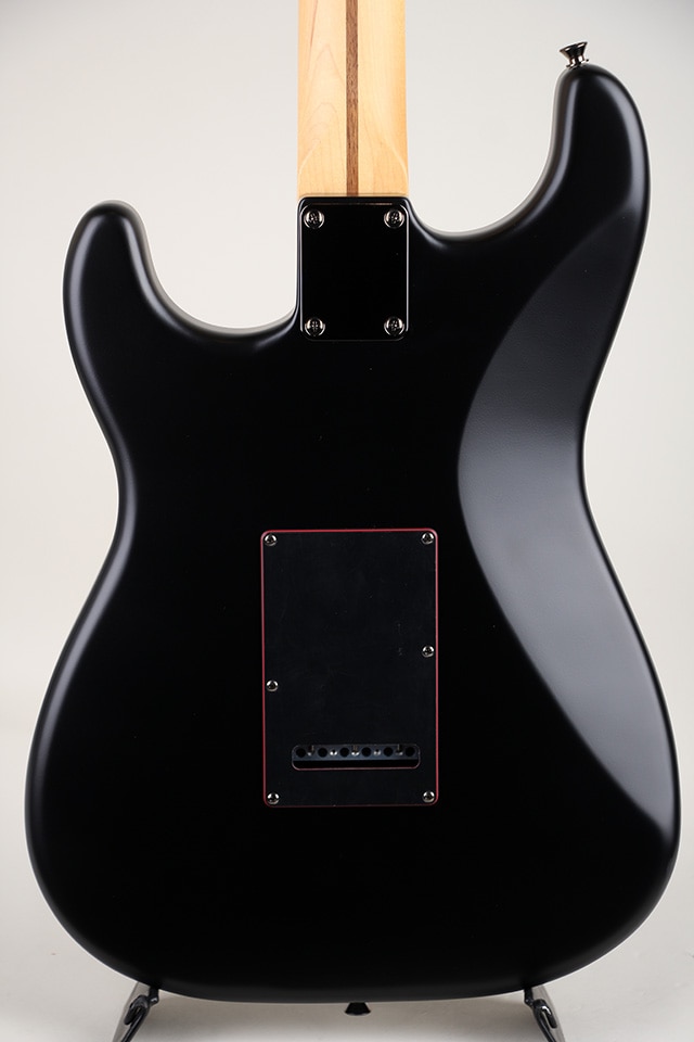 ボディーとマッチングヘッドカラーにはマッドな質感のブラックが使われ、ハードウェア、ナット、プラスチックパーツなどにブラックカラーのものがあしらわれており、スパゲティータイプのメタルロゴ、ピックガードレイヤーに採用された赤色をより際立たせ統一感、高級感を醸し出す一本です。