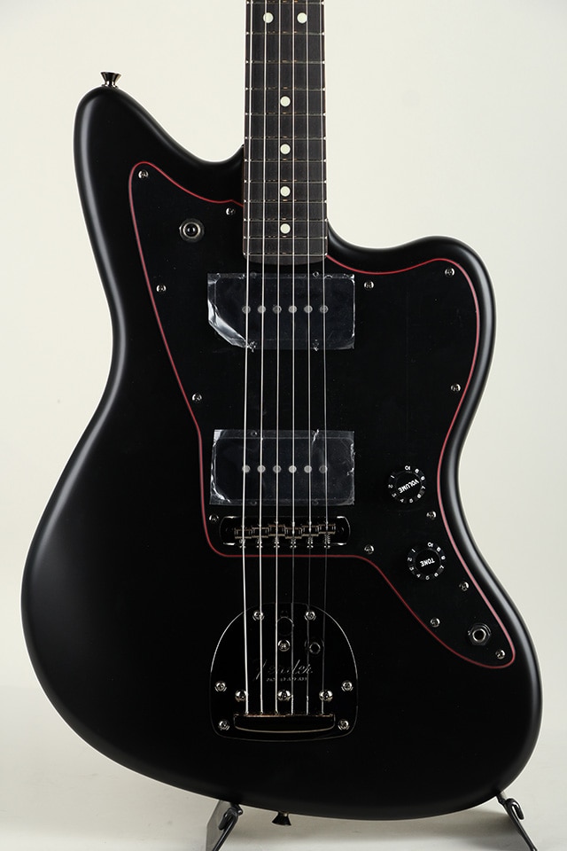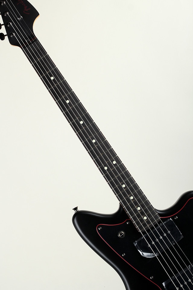フランス語で黒を表す "Noir" をモデル名に冠した、マッドヘビーで高級感を演出する黒と煌々とひときわ目を引く赤を基調とした力強いルックスを施された2025年限定モデルのLimited Hybrid II Jazzmasterです。