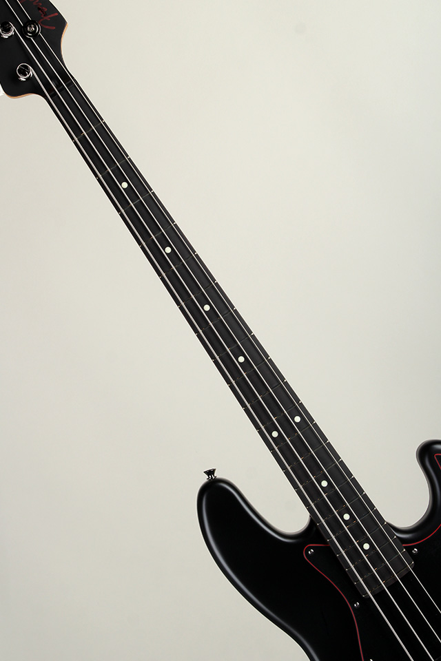 ボディーとマッチングヘッドカラーにはマッドな質感のブラックが使われ、ハードウェア、ナット、プラスチックパーツなどにブラックカラーのものがあしらわれており、スパゲティータイプのメタルロゴ、ピックガードレイヤーに採用された赤色をより際立たせ統一感、高級感を醸し出す一本です。