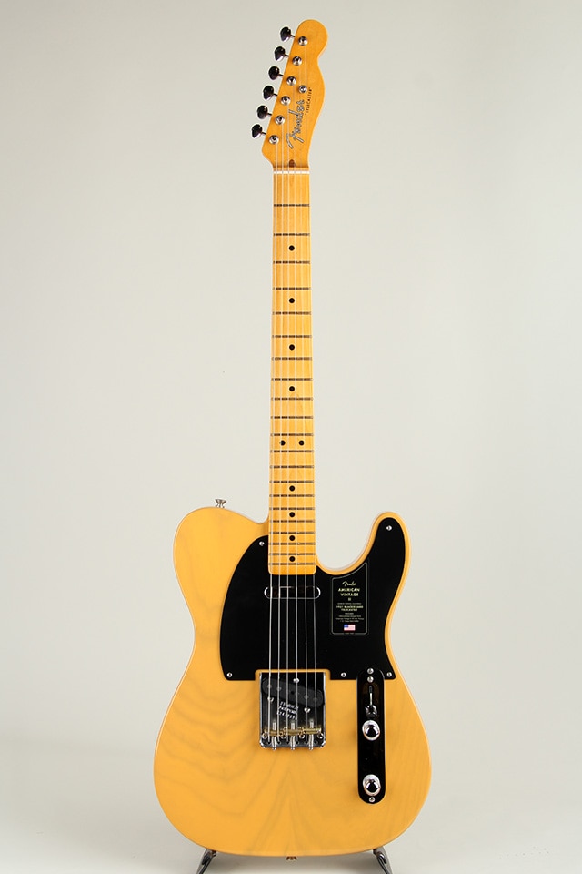 American Vintage II 1951 Telecasterは、Butterscotch Blondeフィニッシュのアッシュボディが特徴で、1951年に存在していたオリジナルモデルのトーンとフィーリングを再現しています。1951 ”U”シェイプのメイプルネックに21本のヴィンテージトールフレットを配した7.25ラジアス指板を採用し、まるで1951年に舞い戻ったかのような、当時の楽器の演奏性を彷彿させます。12フレットのポジションインレイの間隔が若干狭く、Phillipsヘッドファスナーがトラスロッドナット部にあるのも、1951年当時の製造仕様に則って再現されています。3ブラスサドル式ブリッジ、Fender Deluxeチューニングマシン、Pure Vintage '51 Telecasterピックアップが、クラシックでオーセンティックなトゥワングサウンドを奏でます。