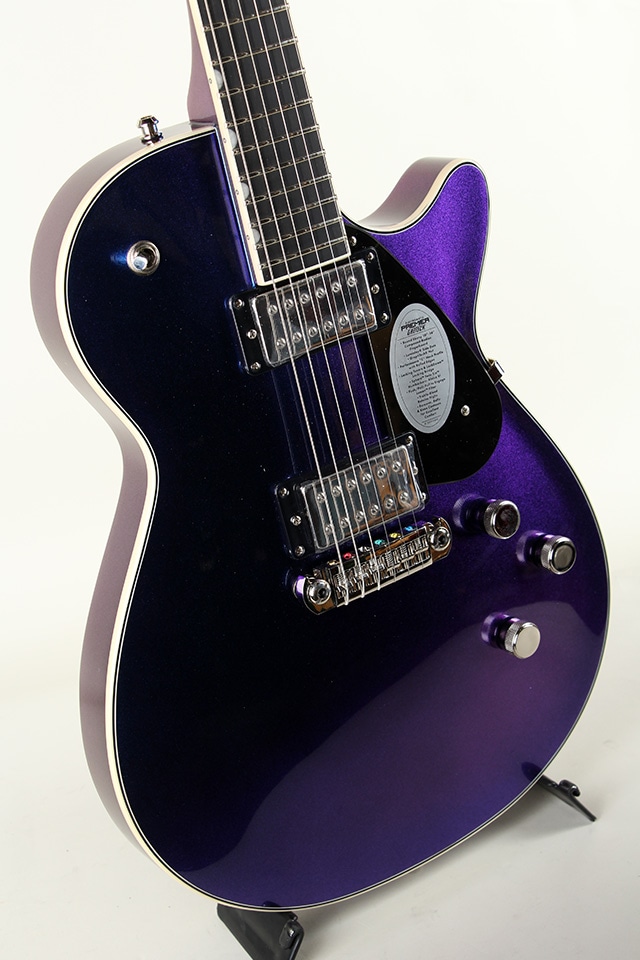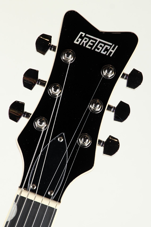 LockDownロッキングブリッジやロッキングチューナーを採用し、チューニングの安定性とメンテナンス性も向上しており、ライブやスタジオでも安心して使用できます。そして、Gretschらしいアイコニックなルックス。Jetシェイプに施された上品なバインディングやパールロイドインレイは、ステージ上でもしっかり存在感を放ちます。