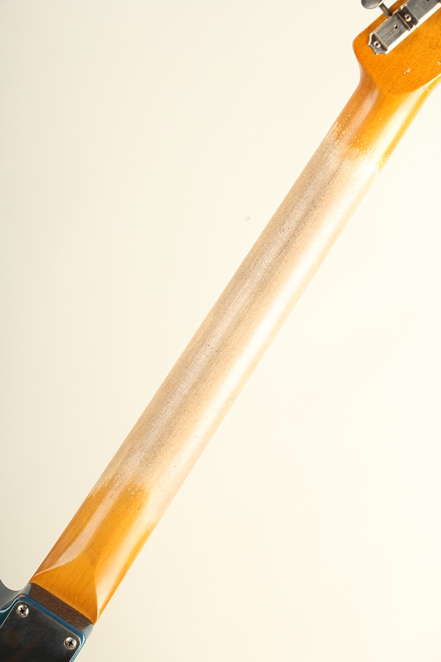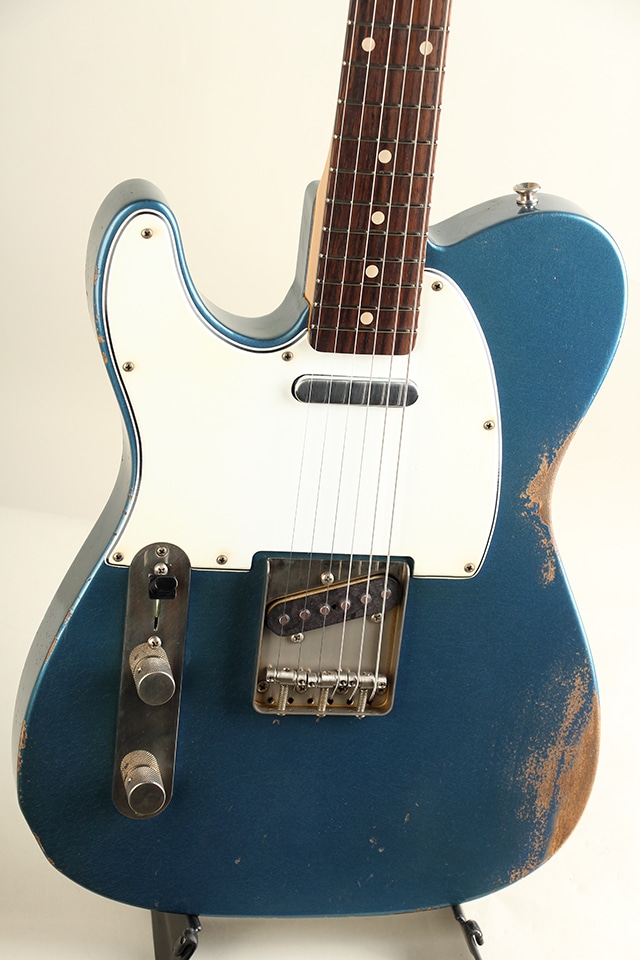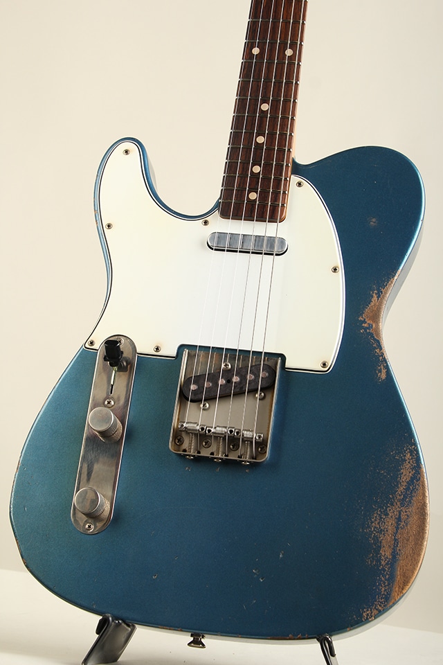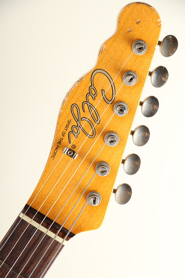 当機は60年前期仕様をベースとしたテレキャスターモデルCJT-60。アルダーボディ、スラブ貼りローズ指板にメイプルネックといったウッドスペックが採用。指板アールは9.5Rにミディアムジャンボ・フレット仕様といった演奏性を考慮したスペックとなっております。全体に施されたリアルなAged加工に焼けたレイク・プラシド・ブルーが貫禄たっぷりの仕上がりとなっております。