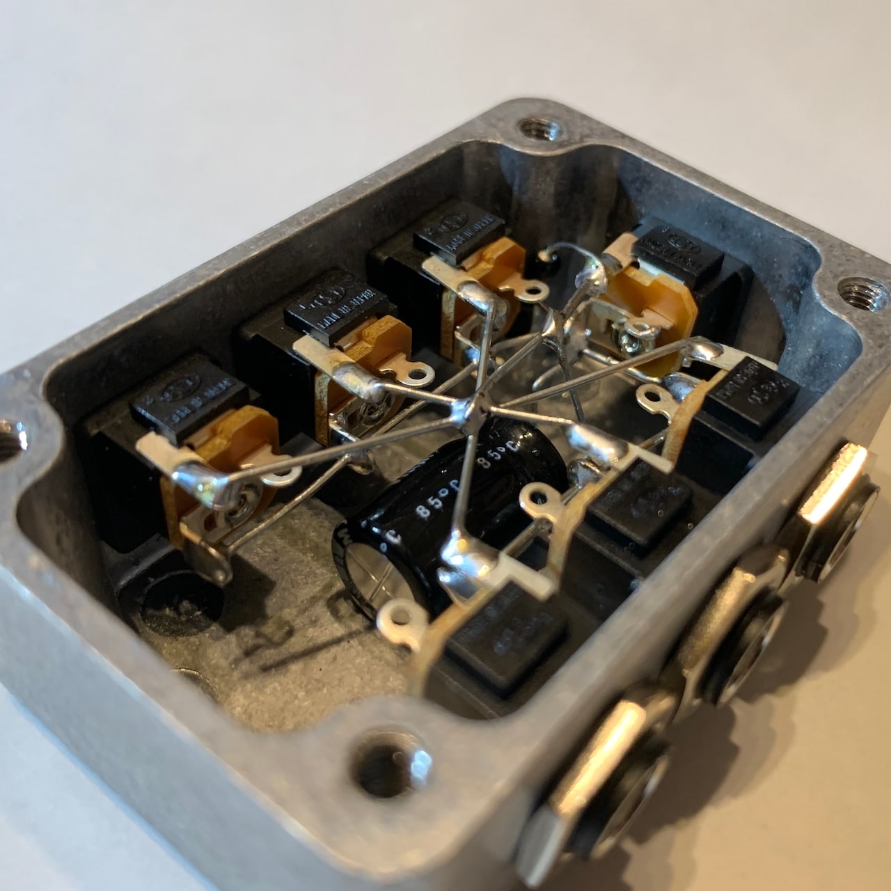内部に組み込まれた大容量のコンデンサは、電気を貯めておくプールとして機能し、より安定したクリーンな電源をエフェクターへと供給します。