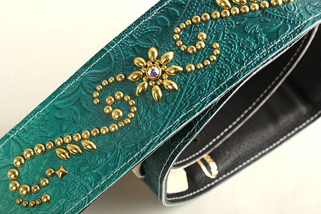 全て手作業で製作する高級本革レザーを採用した柔らかな質感のG-Premiumシリーズに、1つ1つ丁寧に仕上げられる美しいグラデーションの染色。純白の美しいリリー(ユリの花)をイメージしたスタッズデザインが、そのレザーの上に1粒1粒繊細に打ち込まれ、愛を感じる1本に仕上がっています。