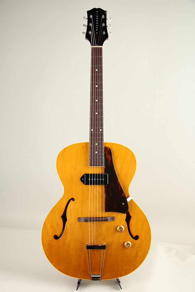 当機はノンカッタウェイ仕様の16インチ、シンボディ・フルアコシェイプにP-90を搭載した"Muddy Non Cutaway”。