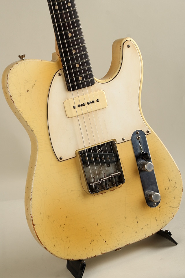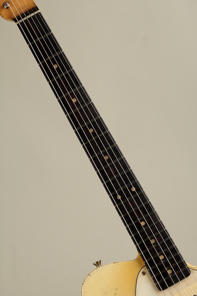 アルダー/ローズ60スタイルをベースにネックピックアップにP-90をマウント。60年初期のハードウェアとリアピックアップを再現されており、ブリッジサドルもスパイラルサドルが採用。ピックアップの直流抵抗値も近似値にて設計されており、P-90とシングルコイルのピックアップ切替時の出力差がありません。指板エッジの面取りやそれに絡む塗装チェッキング、見た目だけではなく手触りまで再現されたレベルのRelic、ヴィンテージと見まがう圧巻の風貌が見事に再現されております。そのサウンドは心地よく枯れており、艶やかかつ瑞々しい絶妙な色気のある広域レンジは正統派ヴィンテージサウンド。期待通りのクリスピーさに反応の良いスピード感があり、荒々しいビンテージさながらの芯の太さを持っています。力強いコードワークには期待通りの図太い音圧感を感じさせてくれますが、フロントピックアップはシングルコイルとは思えないウォームなトーンを出力します。