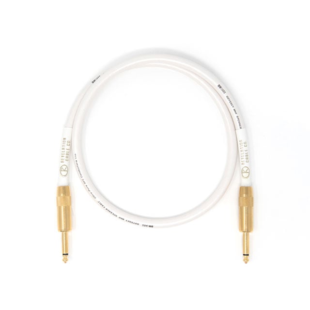 パールホワイトのケーブルにゴールドプラグ、ホワイトヒートシュリンクの組み合わせ。音を出力する際の大事な部分でありながら、ついつい軽視されがちなスピーカーケーブル... ですが、そのスピーカーケーブルに注目を置いてもらえるような美しいデザインでカスタマイズされたRCC仕様のDH Labs Odyssey MkII!どこのメーカーかわからないようなとりあえずのケーブルをキャビネットに繋いでしまっているギタリストのあなた!是非、交換してみましょう。鳴らした瞬間、バンドでのギターサウンドは驚くほど変化することでしょう。