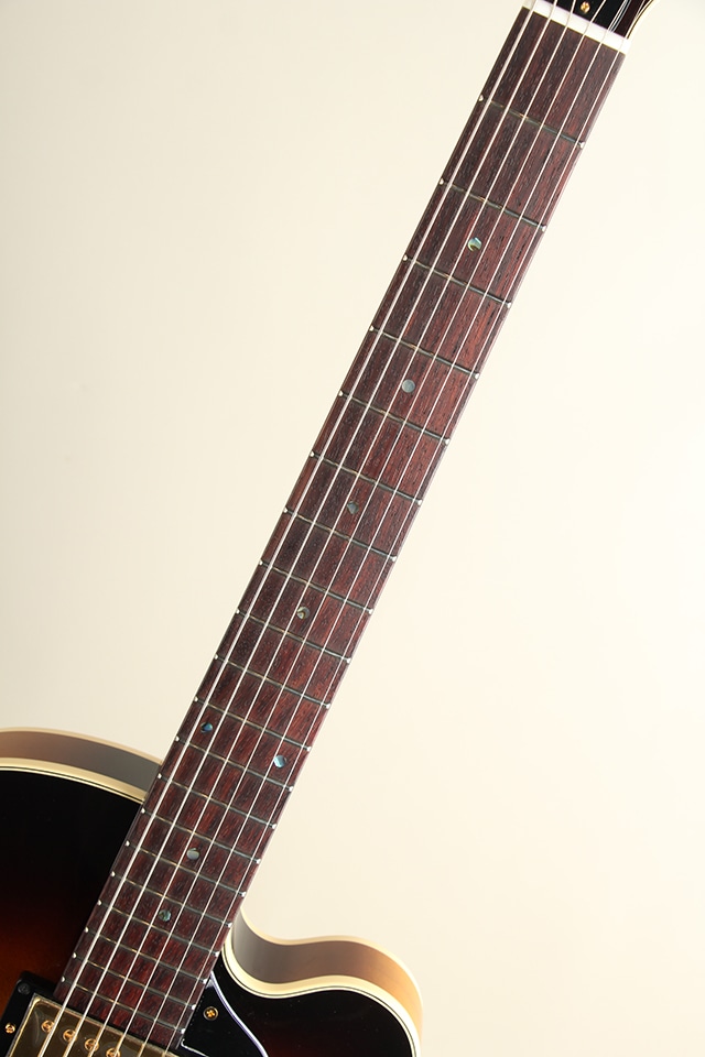 コンパクトなボディサイズとは思えない程のアコースティック感溢れる鳴りが素晴らしく、ハムバッカーから成るウォームかつ芯の太いサウンドは、シンボディならではのクリアさと立ち上がりの良さも持ち合わせた上質な響きを聞かせてくれます。タッチに対する反応も良く弾き手のニュアンスにしっかりと応えてくれる印象です。