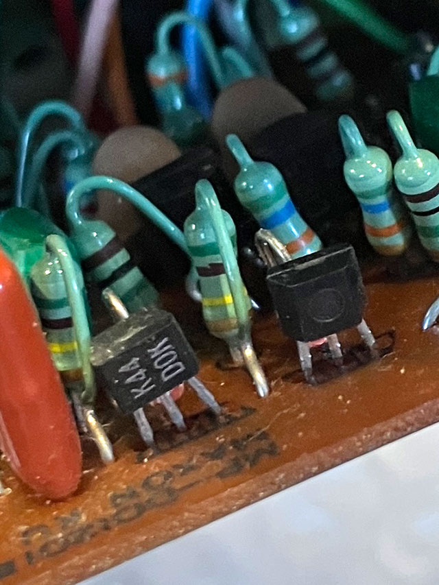 シリアルNo.138776、オペアンプにRC4558P(マレーシアンチップ)搭載、MP-DO1201B(MAXON KU) 基板、FETは2SK44、トランジスタ2SC1815のグリーンランク搭載、TSと808の間にハイフンあり、メーカー名Rマークあり、DCジャックがナットなしの仕様となります。