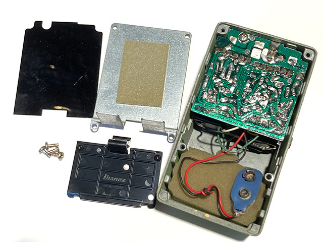 もともとMaxonブランドで製作されていたOD808のOEMブランドとして生産されたのが始まりで、その名残は基盤右上の刻印からも見受けられます。当時このTS808を含むIBANEZブランドは海外のみで販売されていました。