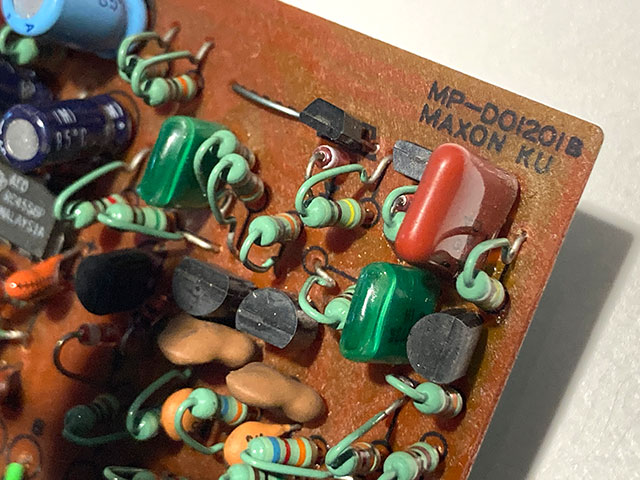 シリアルNo.138776、オペアンプにRC4558P(マレーシアンチップ)搭載、MP-DO1201B(MAXON KU) 基板、FETは2SK44、トランジスタ2SC1815のグリーンランク搭載、TSと808の間にハイフンあり、メーカー名Rマークあり、DCジャックがナットなしの仕様となります。