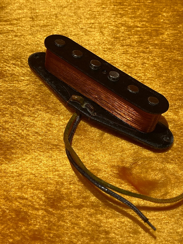 このモデルにもシグナル伝達において重要な要素である配線材はHot側に56年、Cold側に57年製のBelden社ラッカー引きクロスワイアーを採用しました。着磁は直流式を2回施して各ポールピースの磁束を安定させています。ラッカーディッピングもワックスによるポッティングも、厳重な温度管理による内部除湿も再現しています。