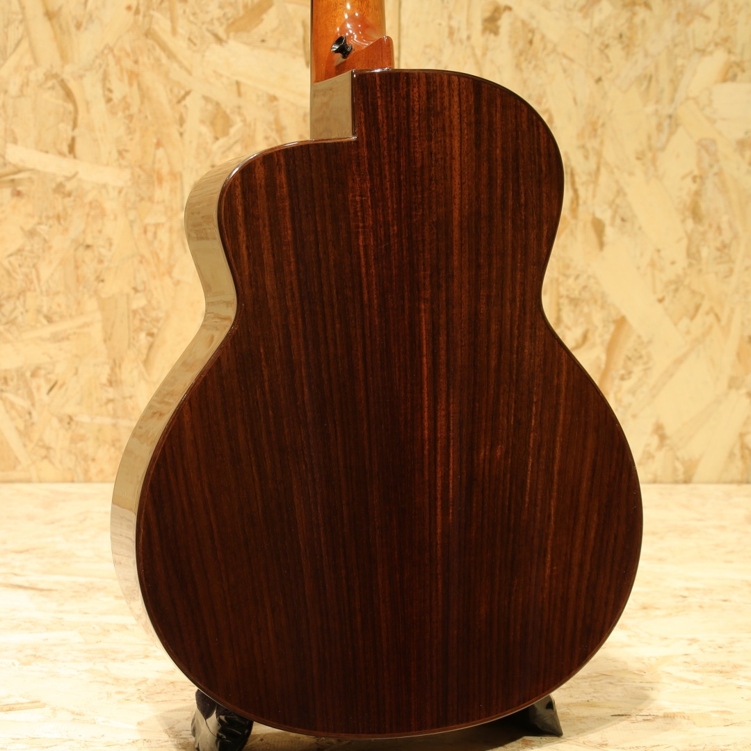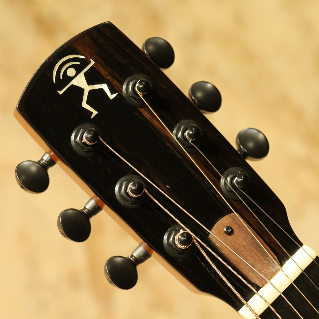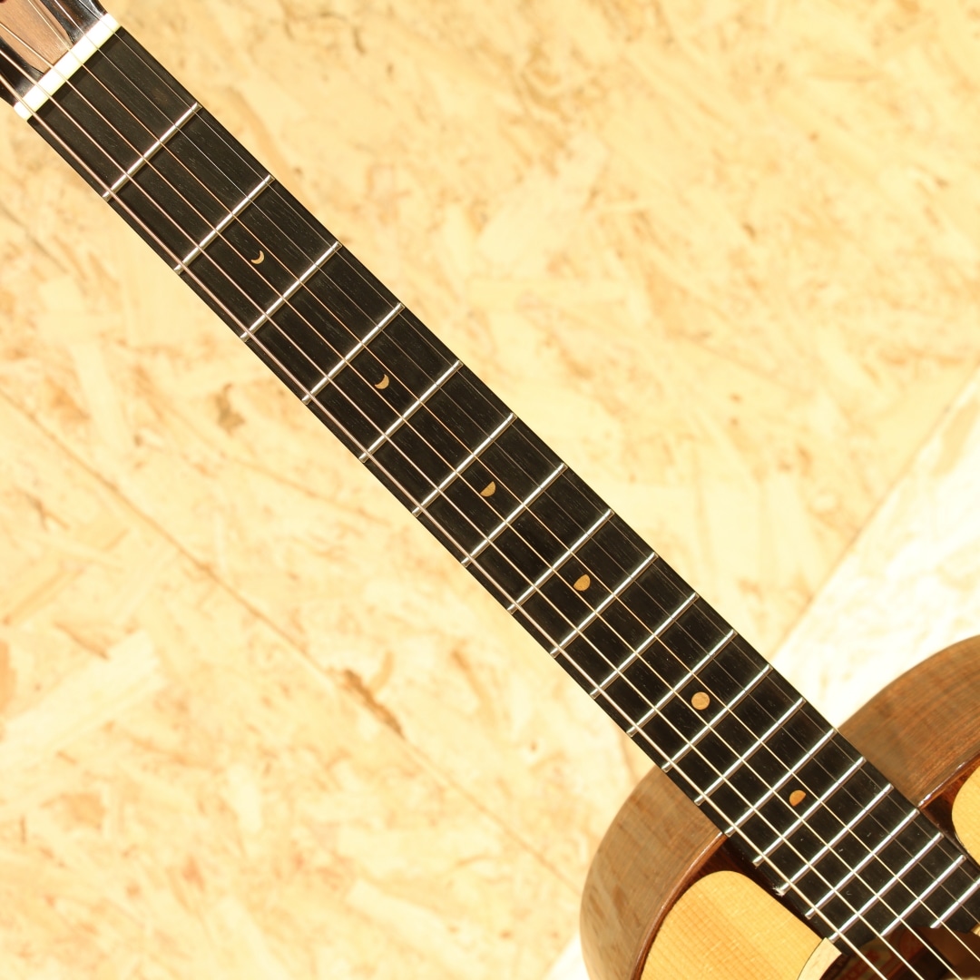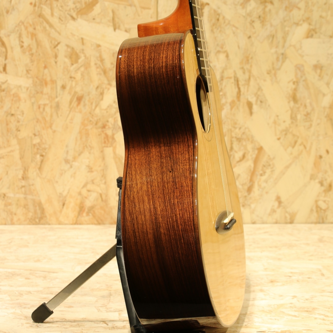 スターターモデルからプロフェッショナルモデルまで幅広く展開するブランド、aNueNue (アヌエヌエ)。可愛らしい見た目と心地良い弾き味、想像を超える音量で多くのプレイヤーを魅了します。本器は小さなボディーサイズながらもビックサウンドとクリアな音質を持ち合せるBird Seriesの最上位機種"M-200"。ムーンスプルーストップ、イーストインディアンローズウッドサイド&バック、マホガニーネック、エボニーフィンガーボード&ブリッジ、43mmナット幅、610mmスケール。オリジナルシェイプとなるコンパクトなボディサイズ、体へのフィット感は素晴らしく、ノンストレスな抱え心地です。その小ささからは想像のつかない豊かな鳴り、低音域の安定感もあり弾き語りやソロ弾きでも活躍してくれる1本です。ネック形状は程よく肉付きのあるスッキリとしたラウンドシェイプ、43mmナット幅と握りやすいサイズで初めてギターに触れられる方でも馴染みやすい形状です。月の満ち欠けを示した指板インレイやスポルテッドメイプルの木目が目を惹くロゼッタデザインなど、ルックスにも拘りが見られます。全体的に大きなダメージは見られず、表面上の擦り傷が少し見られる程度と美しい外観が保たれています。ネックコンディションも良好、収まりの良いスモールボディにショートスケール仕様と演奏性も抜群です。自宅でお手軽に弾けるギターとしてはもちろん、出先に持ち出し奏でるギターとしても大変オススメできる1本です。ブルーカラーのオリジナルハードケースが付属します。