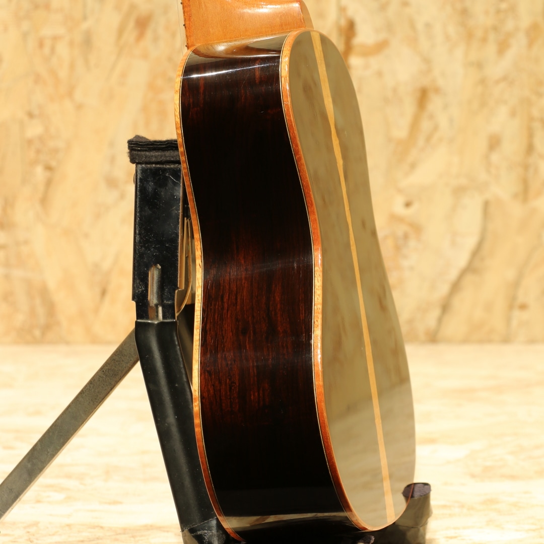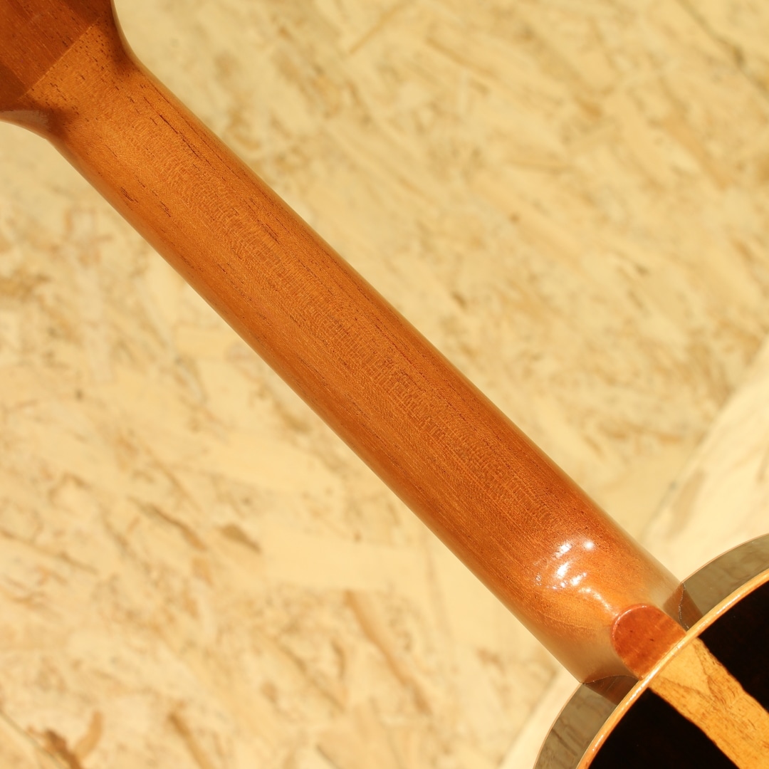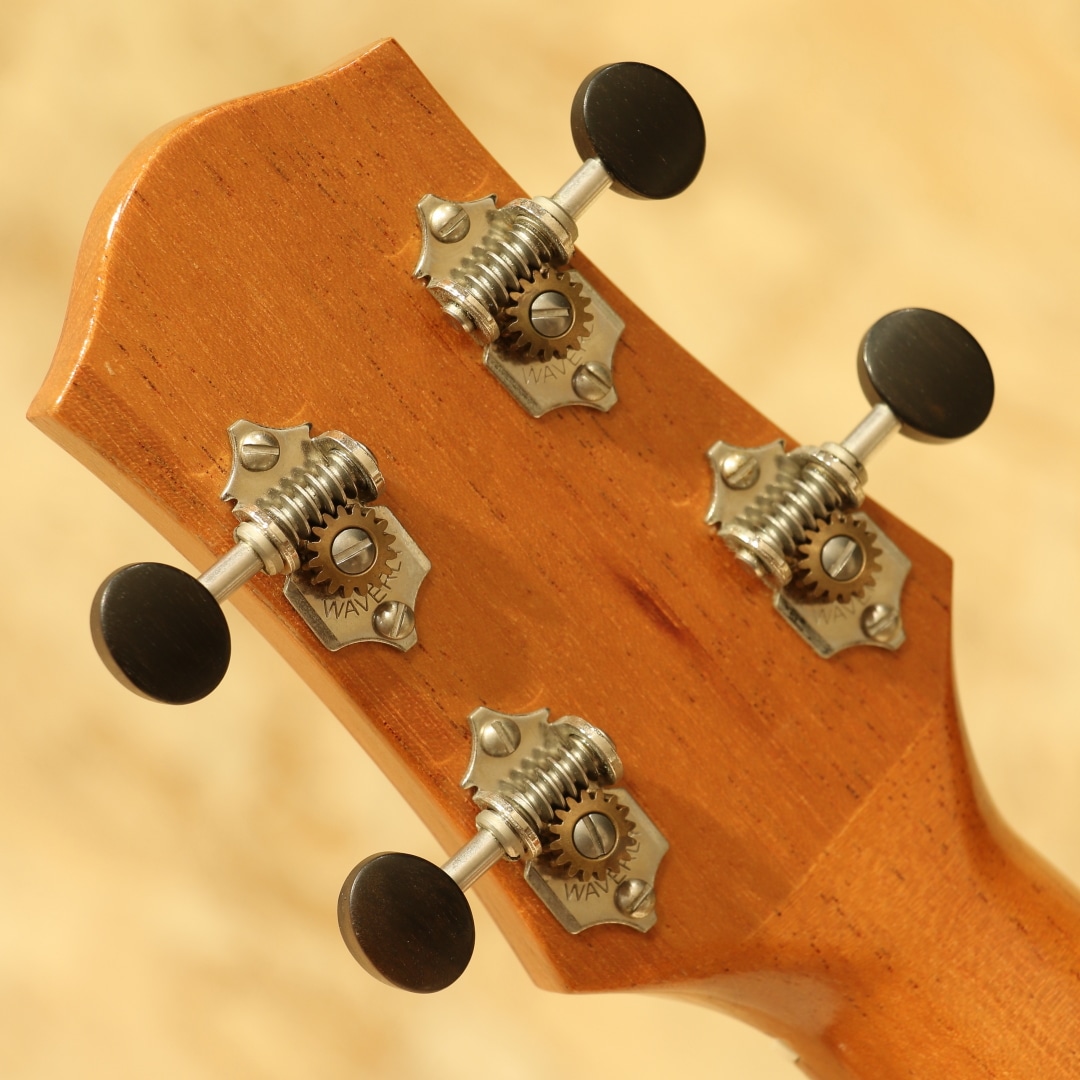 1992年からオレゴン州ポートランドでギター製作開始し、現在はハワイ島在住のビルダー"Woodley White"氏が手掛ける”Pu’uwai”(プウワイ)。”Woodley White”氏はクラシックギター、アコースティックギター、エレキギター、ハープギター等の楽器製作でも有名で、プロミュージシャンのウクレレも手掛ける等、その技術、実力は本物。本器はスプルースとアフリカンブラックウッドを掛け合わせたコンサートロングネックモデル。スパニッシュシダーネック、エボニー指板、エボニーダブルホールブリッジ、エボニーボタンウェバリーペグ、ハワイアンコアバインディング、アバロンロゼッタ、ロープデザインパーフリング。ヘッドにはハワイ語でハートを意味する”Pu’uwai”のデザインロゴが施されております。本器はウクレレではあまり見かけないボルトオン仕様、ボディとネックをボルトで締め、より密着性のある構造。弦振動による木の鳴り、振動を密に伝達しウクレレ全体で音を奏でます。しっかりとした重量感を感じるサウンドですが、スプルース材の軽やかさが加わることで抜け良く、弾むような響きとなっております。ボディバックやサイドに木目の節を埋めた跡のようなものが白くなっていますが、恐らく製作時からのものです。塗装内部のものですが、仕様上への影響はありません。その他、トップ面の打痕や全体的な擦り傷は見られますが目立つような致命傷はありません。安定感抜群のトーンはソロウクレレなどにも相性ばっちりです。プレイコンディションも大変良好で初めてコンサートロングネックを持たれる方でも違和感なく持ち替えていただけます。ハワイビルダーがつくり出すこだわり派の1本。是非お試しください。汎用ギグバッグが付属します。