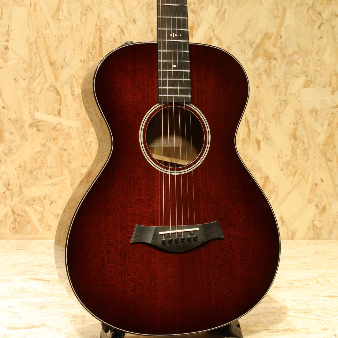 1974年にボブ・テイラーとカート・リスタグの2人によって創立されたテイラー・ギター。革新的なアイデアと高い技術力、ハイセンスなマーケティングで2000年代より急速に成長。今や世界でも屈指のアコースティックギタートップブランドとして、その名を馳せております。本器V-Classブレーシングを採用したグランドコンサートサイズのノンカッタウェイモデル"522e" 。マホガニーボディ、マホガニーネック、エボニー指板&ブリッジ、12フレットジョイント、500シリーズ指板インレイ、ES2搭載。V-Classブレーシング構造によりダイナミックレンジ、サステインが広がりより表現力が豊かになり、サイズ感以上の箱鳴りが体感できます。500シリーズのマホガニー材は中音域/ミッドレンジがダイナミックでパンチのあるトーンとして長年アコーステイック・プレイヤーに愛されている木材です。本器はトップ&サイド&バックにすべてマホガニーを使用したオールマホガニーモデル。小振りなボディと短いスケールで弾き易さ、抱え易さは抜群。マホガニーらしい暖かみのあるミッドレンジは多くのプレイヤーを魅了します。ヘッド裏からネック裏、ヒールにかけて塗装の曇りが確認できます。6弦側サイド面に僅かな打痕がありますが、塗装面のみで本体への影響はありません。6弦ペグのツマミがややあそびがありゆるい箇所がありますが、チューニングは問題なく作動します。ピックアップにはES2ピックアップシステムを搭載。テイラー独自のシステムでサドル横にピエゾを仕込むことで、よりナチュラルなラインサウンドを出力する事が出来ます。操作もvol,treble,bassの非常にシンプルな構成。繋いでから迷うことの少ない、すぐに音出しの出来る優秀なシステムです。ネックコンディションは良好、弦高設定もやや低めでボディサイズを活かしたフィンガースタイルでも活躍の見込める1本です。ステージ上でのメイン機としてはもちろん、いつでも傍に置いて弾けるようなサブ機としても充分に楽しんでいただけるかと思います。是非ご検討ください。オリジナルハードケースが付属します。