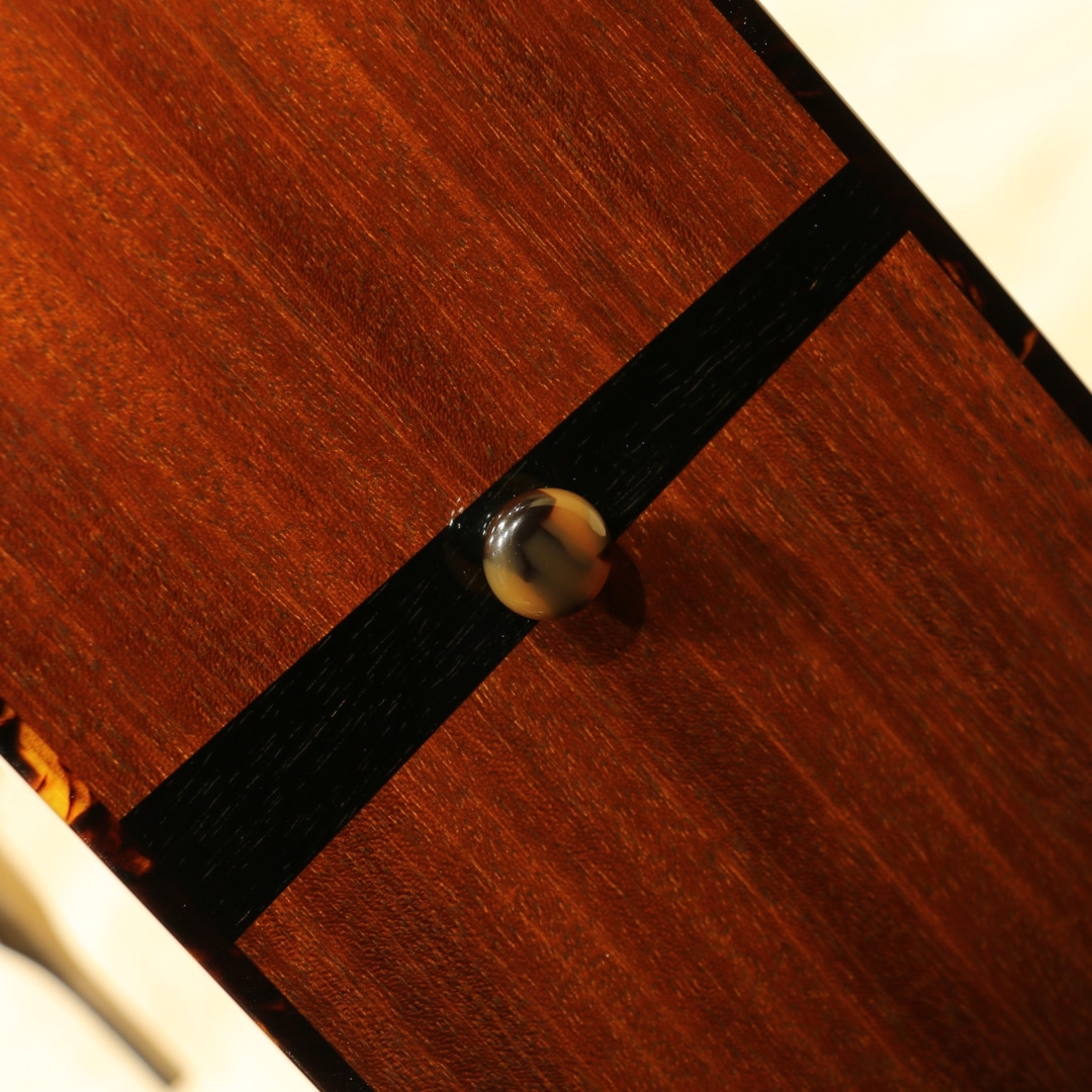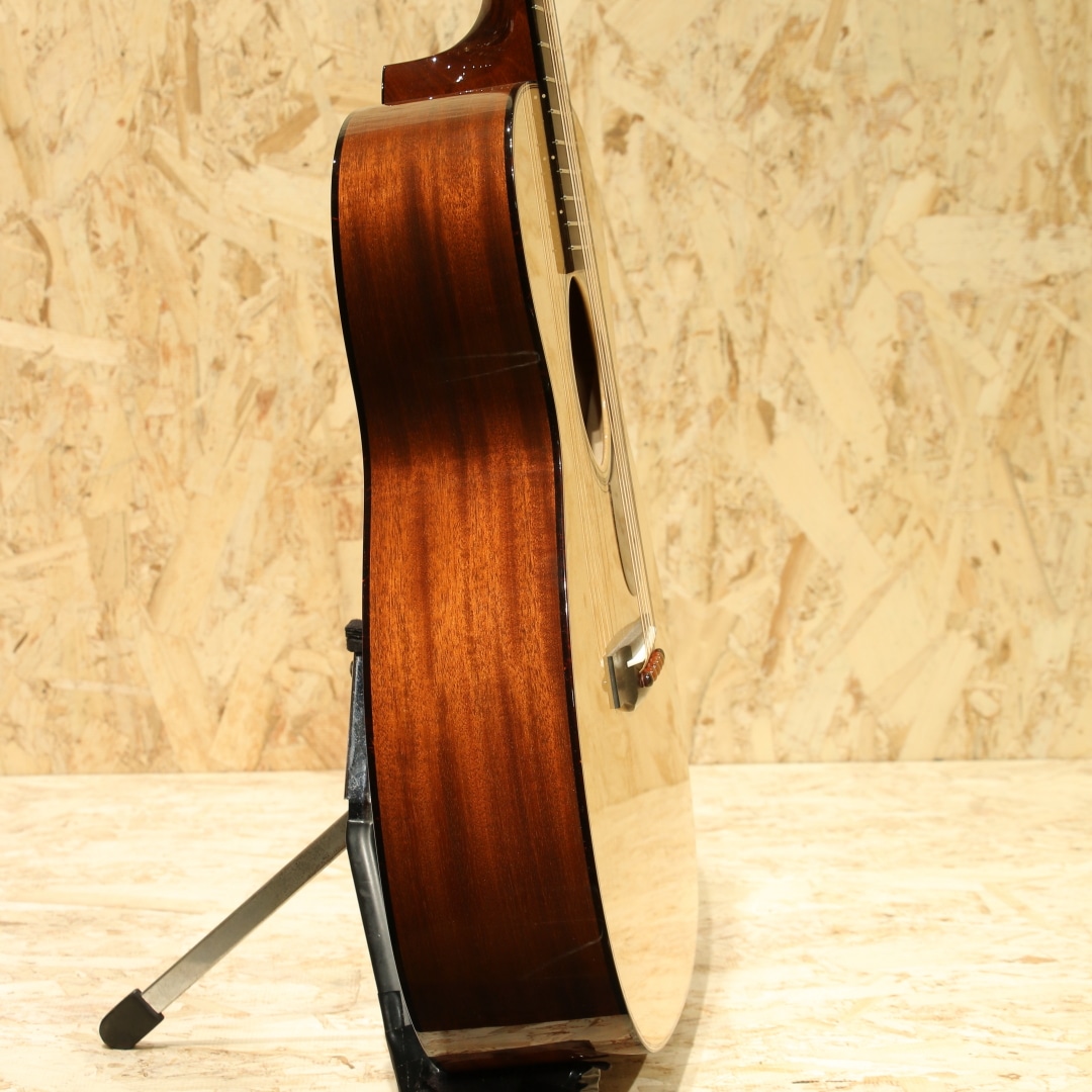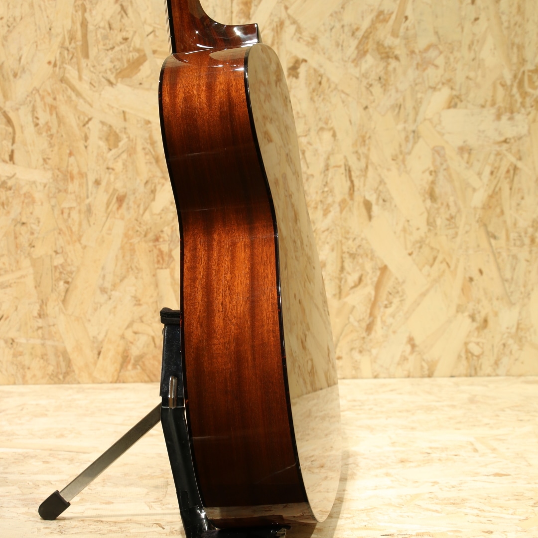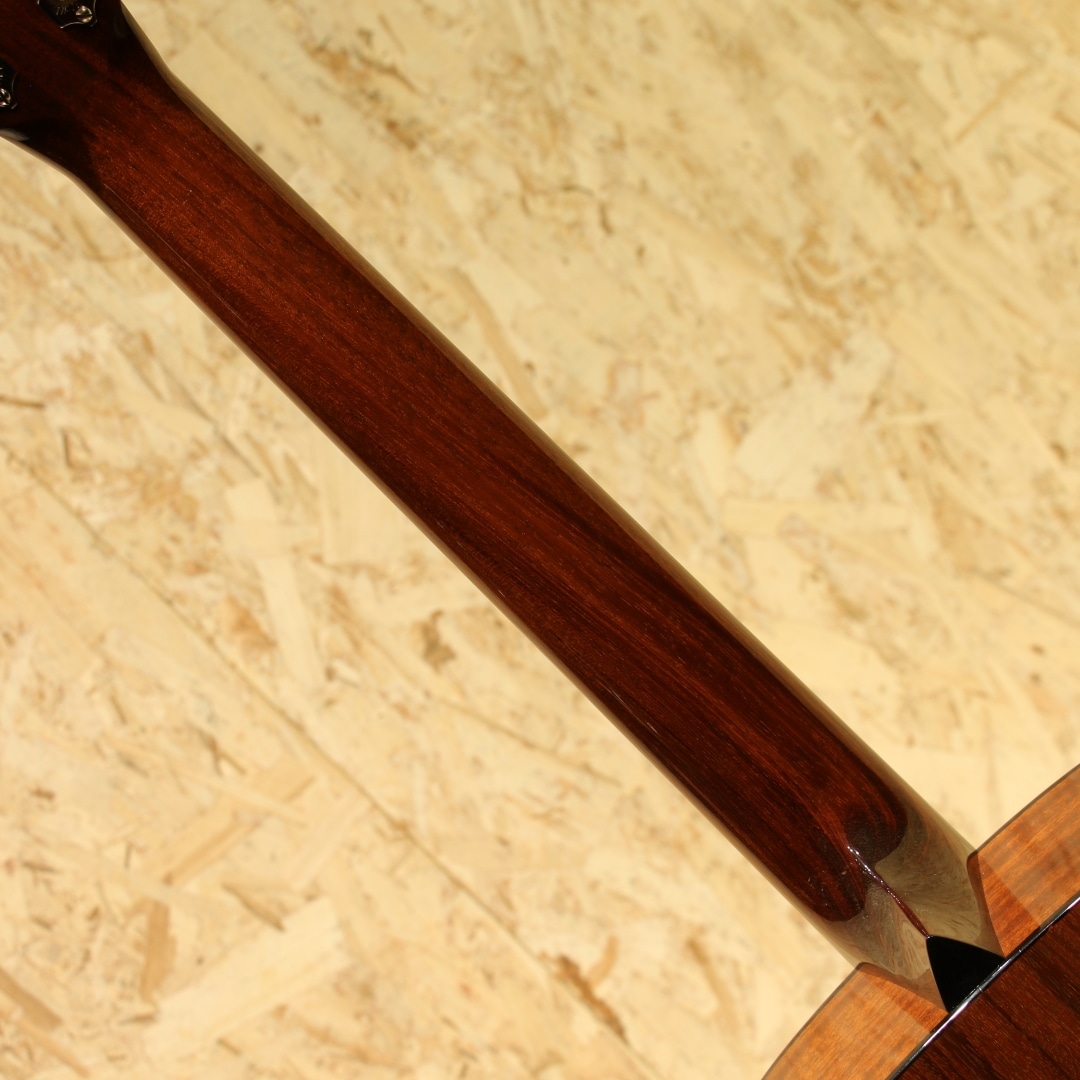 世界的にもっとも高い評価を得ているブランドの一つであるコリングスギターの新しいアイデアとしてリリースされたラインナップ"トラディショナル「T」シリーズ"。ビルのルーツに遡りコリングス・サウンドに更なるトーンバリエーションが加わったモデルとなっていて、1930年代のビンテージギターの特徴でもある強力な基音のレスポンスを備えたギターに仕上がっています。本器はOOサイズ、スタイル18を基にした"OO1T 14Fret”。シトカスプルーストップ、ホンジュラスマホガニーサイド&バック、ホンデュラスマホガニーネック、エボニー指板&ブリッジ、ウェバリーペグ、ナット幅42.9mm、MOPドット指板ポジション、べっ甲柄セルロイドピックガード、べっ甲柄バインディング、スキャロップドXブレイシング。組み込みには動物性接着剤を使用し、極薄のニトロセルロースラッカーフィニッシュが用いられたこだわりの造り。これがしっかりとした基音やレスポンスを生み出しています。ぱっと見や抱えた感覚ではわかりませんが、ボディのウエスト部をはじめ一般的なOOサイズよりもやや横幅が広く、繊細なタッチの差や見た目以上のボリュームを出すのにも理想的なサイズ感にて設計。ハッキリとした輪郭で、つやつやとした一音一音の粒立ち。余分な倍音に頼らないほど線の太い実音ですが、音と音とには確かな間隔があり、サウンドに立体感を覚えます。強弱タッチがそのままに飛び出る表現力の高さにも驚きますが、ハイポジションに至るまでコシと粘りのあるサスティーンも流石コリングス。高音域の抜けがフィーチャーされがちな小ぶりシェイプですが、豊かな中音域とサイズを超えたボリューム感が気持ちよく、OOでも充分かもと感じさせてくれます。ショートスケールながら絶妙なテンション感を持っているので、ピックストロークでもフィンガーピックでも幅広いスタイルに対応できる高ポテンシャル。ストロークからフィンガースタイルまでオールラウンドに対応できる演奏性を持った1本です。量産メーカーとは生産スタイルも一線を画すスタイルを貫くコリングスならではのハイクオリティな逸品。ぜひそのお手元でご体感ください。