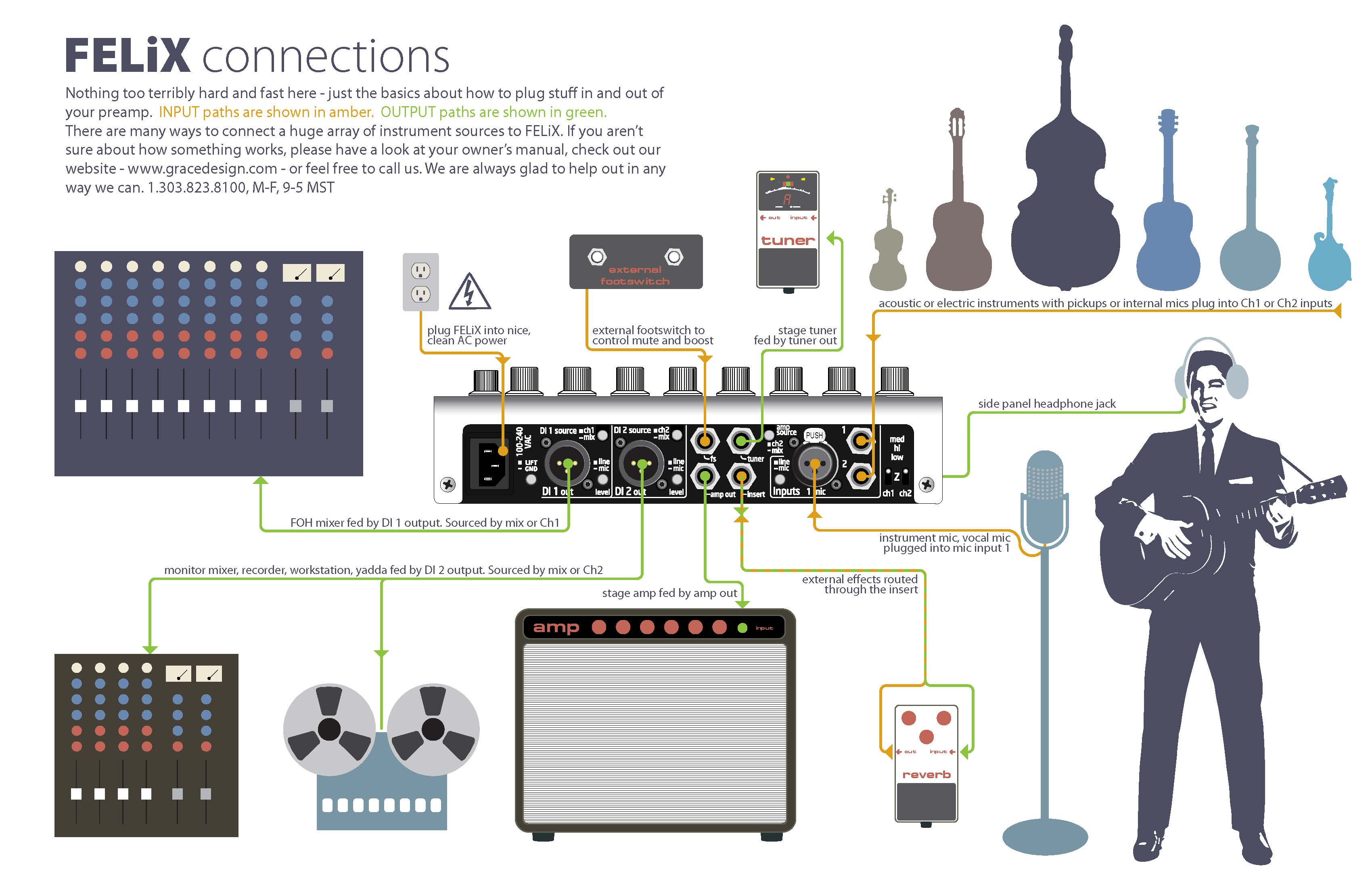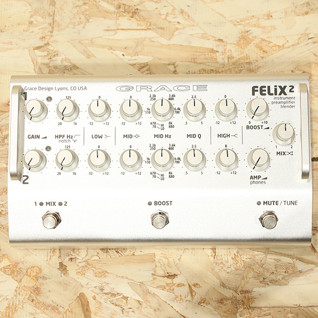 GRACE designの"FELiX(フェリックス)"は、世界のトップスタジオが導入する同社の「透明感と表現性の高い」音質設計をフル投入し、生楽器がもつ本来の響きや鳴りを、プロの業務用レコーディング機材と同じクオリティで再現できる2chの「楽器用プリアンプ/ブレンダー」です。各チャンネルにEQ/フィルター・セクションを配し、アコースティック楽器用のピエゾ/マグネティック・ピックアップやコンデンサーマイクを、ミックスしてバランス出力することが可能です。