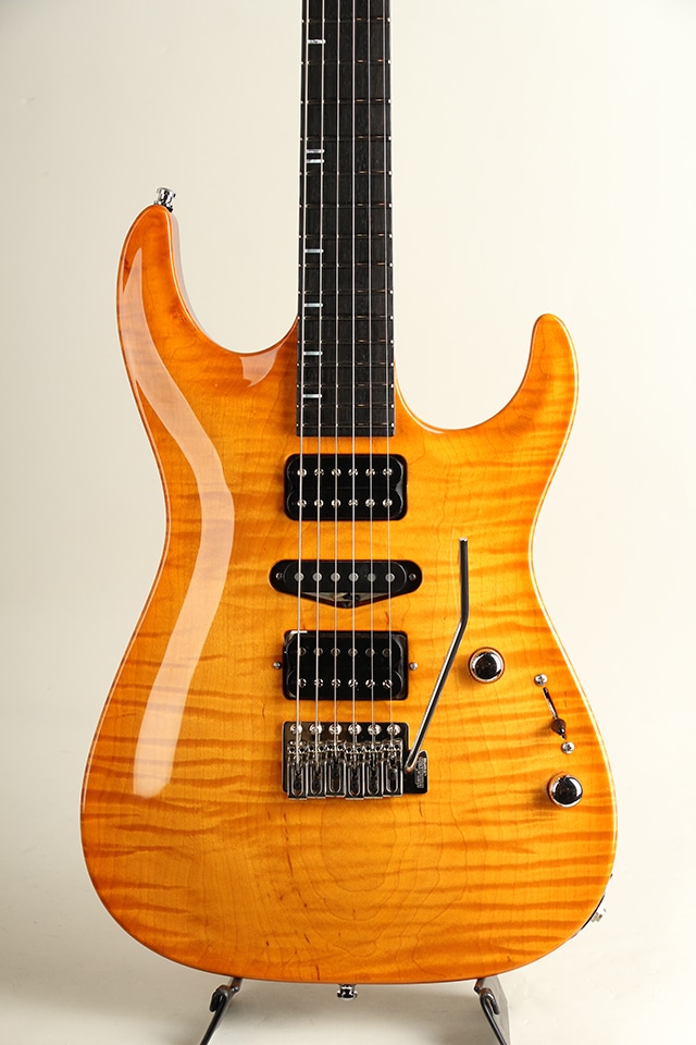 当機はMarchione宅にて直接オーダーし完成したNeck-Through Carve Top。1pcs メイプルトップにトーンスペシフィック・ピックアップのHSHレイアウトを採用した弊社オーダーモデルとなります。