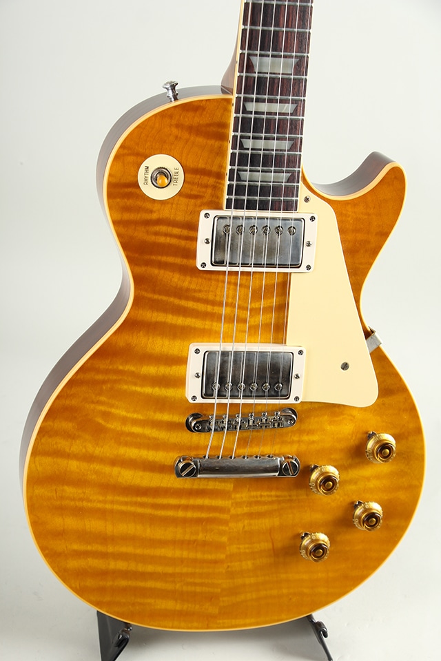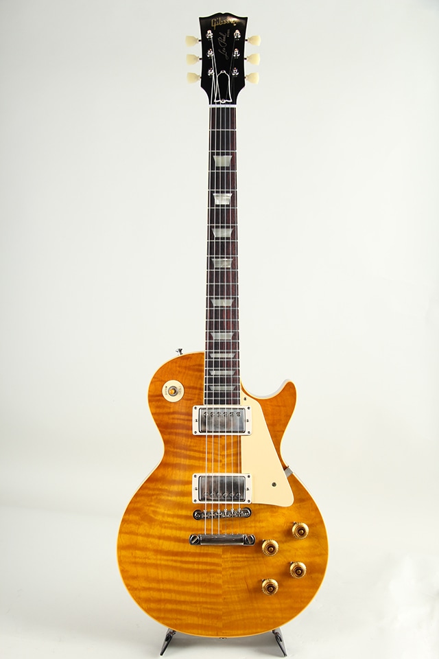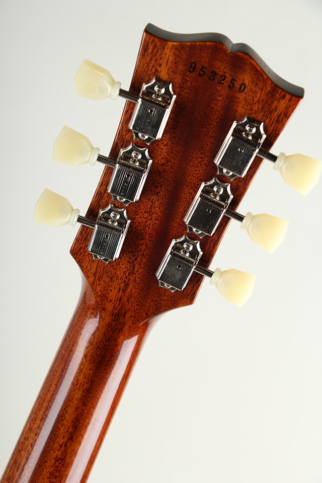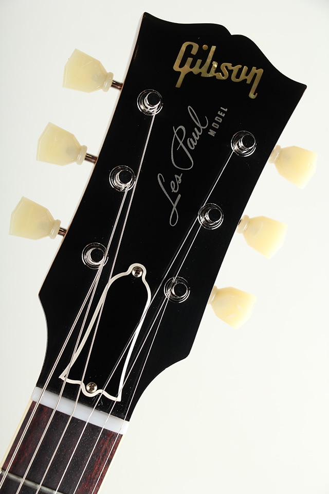 近年リファインされたより当時に近いヘッドトップの“Gibson”&“Les Paul”ロゴ、指板のディッシュインレイ素材の色味、サーキット内のポットやバンブルビーコンデンサーもビンテージライクな仕様が採用。オールニカワ接着やトゥルーヒストリックパーツ採用等の基本仕様も、勿論継承されております。