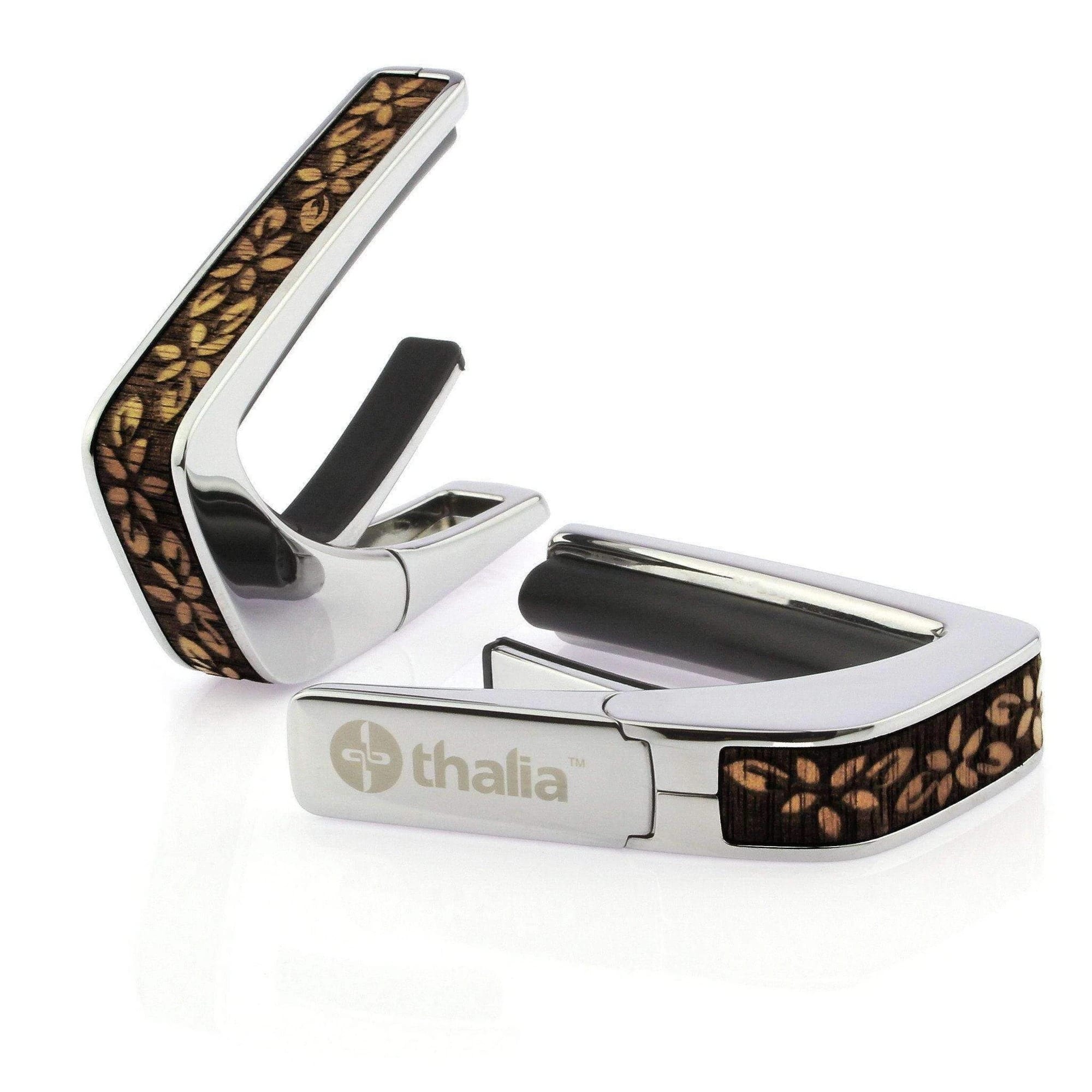 これまでにないデザイン性と機能性に優れたカポタスト『Thalia Capos / タリア・カポ』 従来のカポとは一線を画す、見た目にも豪華なエキゾチック・ウッドやエキゾチック・シェル、彫刻や筐体のメッキ / フィニッシュ / カラーを採用したデザイン性に優れたモデルがあり、また、見た目のみならず機能面に関しても、通常のカポタストのように、使うギターの種類に合わせて1つずつカポを持ち替える必要がなく、フレットパッド(別売)をギターに合うものに交換するだけで簡単に、常にパーフェクトなテンション感とピッチ感で演奏する事を実現。 フレットパッドのRには「0" for Classicals, 7.25", 9.5", 10", 12", 15", 16"」の7種類があり、『スタンダード・テンション』と『ハイ・テンション』の計14種類。使用するギターや演奏に合わせてカスタマイズする事が可能です。 ・スタンダードテンション (弦に接するフレットパッド部分が標準的なモデル) 一般的なギター用 ・ハイテンション (弦に接するフレットパッド部分が厚いモデル) 薄いネック、12弦、ウクレレ、マンドリン、バンジョー用 *出荷時には12"サイズ ラバー素材のフレットパッドが22が付属しています。12" スタンダードテンションのパッドは本体に装着されております。ラバー・タイプはしっかりと弦を固定します。 0" for Classicals, 7.25", 9.5", 10", 15", 16"の6種類、スタンダード・テンション & ハイ・テンション 2仕様の交換用パッド合計12個セットはこちらからご注文くださいませ。 ■Thalia Capos RUBBER TUNING KIT 【6set RUBBER FRET PAD KITS】 その他、握りこんで開く「リバース・アクション」機能が採用されており、1弦側からカポを取り付ける事で、演奏のポジションから手を返す事なくスムーズに指板上でカポを移動させる事を可能にします。 Thalia Caposは様々な楽器に使用される事を想定しており、常に適切なテンション感で演奏していただけるよう全ての製品の内臓スプリングの圧力が約7.5kgになるように、ひとつひとつ徹底した品質管理のもと製作されております。 デザイン面、機能面、品質面、テンション感とピッチ感、すべてにおいてパーフェクトなカポタストです。 ■Fretboard Radius Guide メーカー / モデル別 フレットパッド対応表 握りこんで開く「リバース・アクション」機能が採用されており、1弦側からカポを取り付ける事で、演奏のポジションから手を返す事なくスムーズに指板上でカポを移動させる事を可能にします。 Thalia Caposは様々な楽器に使用される事を想定しており、常に適切なテンション感で演奏していただけるよう全ての製品の内臓スプリングの圧力が約7.5kgになるように、ひとつひとつ徹底した品質管理のもと製作されております。 デザイン面、機能面、品質面、テンション感とピッチ感、すべてにおいてパーフェクトなカポタストです。 ◆各部名称 ・フレットパッド 交換可能なフレットパッドは、使用する楽器の指板Rにパーフェクトにマッチします。 ・ピンチパッド ピンチパッドはネック裏にあたる部分で、取り付けたカポの安定性を高め、ネック裏の塗装面に傷がつかないよう保護する役割があります。 ・ピンチチャーム ピンチチャームはカポを適切な圧力で固定する為のパーツです。様々な楽器に使用するに当たって最適な圧力に設定されています。 ・レバーパーム リバース・アクション設計のレバーパームは、カポの移動や取り外しが片手で行えるシンプルなレバー式を採用しています。 ※写真はサンプルです。天然の素材を採用しておりますので、1つ1つ杢目・色味が異なります、予めご了承くださいませ。