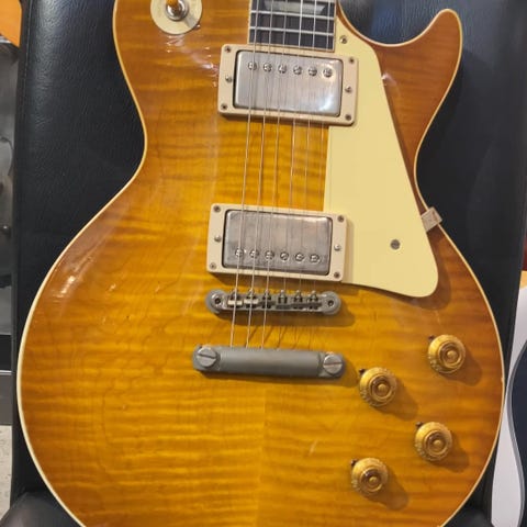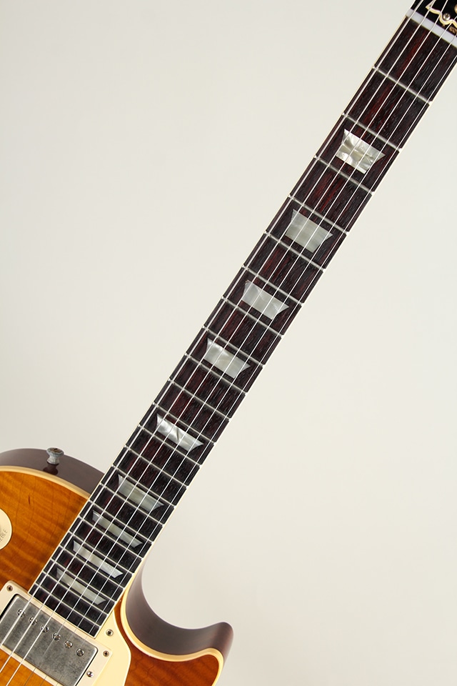 近年リファインされたより当時に近いヘッドトップの“Gibson”&“Les Paul”ロゴ、指板のディッシュインレイ素材の色味、サーキット内のポットやバンブルビーコンデンサーもビンテージライクな仕様が採用。オールニカワ接着やトゥルーヒストリックパーツ採用の等の基本仕様も、勿論継承されております。