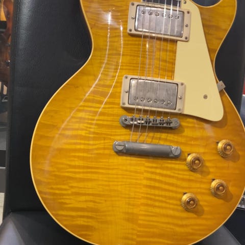 Gibsonナッシュビル工場にて厳選したフィギュアドメイプル材を使用した現地選定材オーダーモデル、Murphy Lab 1959 Les Paul Standard Green Lemon Fade Ultra Light Aged入荷です。