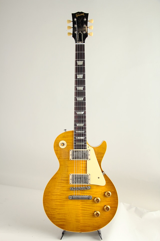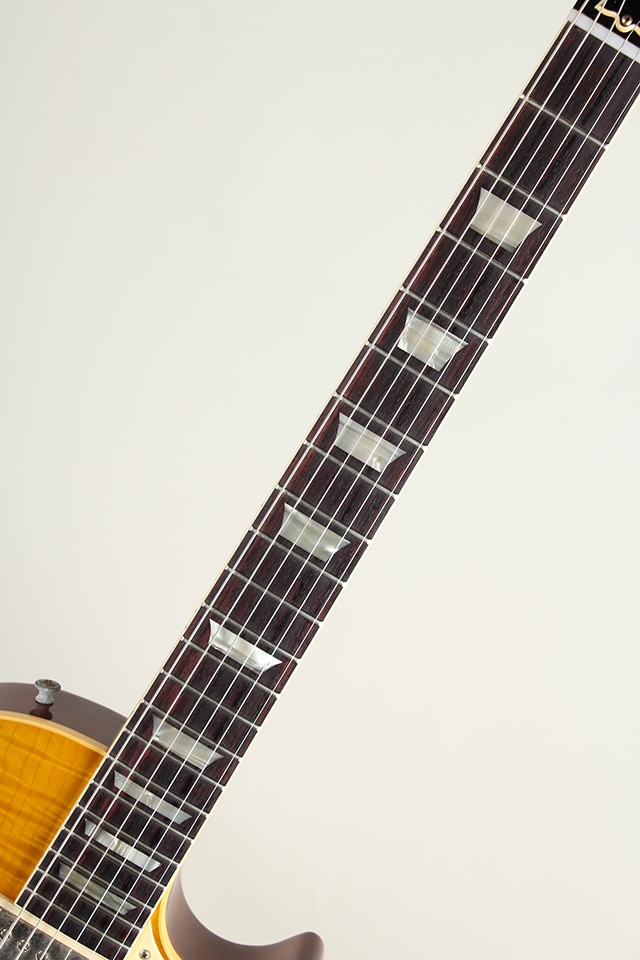 近年リファインされたより当時に近いヘッドトップの“Gibson”&“Les Paul”ロゴ、指板のディッシュインレイ素材の色味、サーキット内のポットやバンブルビーコンデンサーもビンテージライクな仕様が採用。オールニカワ接着やトゥルーヒストリックパーツ採用の等の基本仕様も、勿論継承されております。