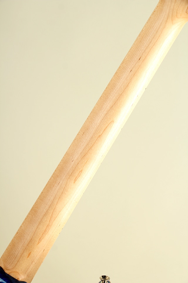 当機は、ボディトップにフレイムメイプル、ボディバックはスワンプアッシュ、指板にはメイプルを採用。豊かな中域を持った響き、ハリのある芯の太いトーンが素早くクリアに抜ける音像、加えてTom Andersonらしいワイドレンジかつ存在感のあるサウンドを生み出してくれます。クリーンではどのポジションでも美しさと芳醇な倍音感を持った響きを、ドライブさせても埋もれる事無いアグレッシブさ、粘り、粒だち、抜けの良さが絶妙に融合されたサウンドをご堪能いただけます。